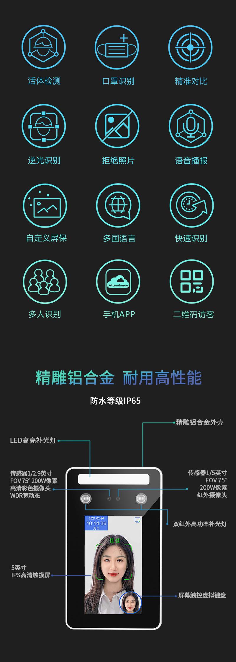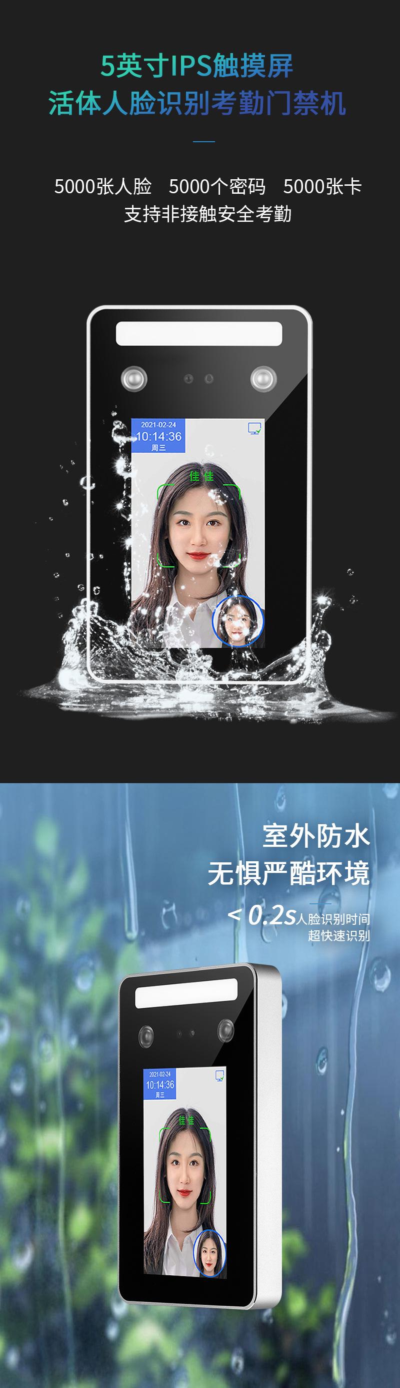 Terminal de control de acceso y asistencia con reconocimiento facial dinámico de metal IP65, todo en uno, resistente al agua para exteriores