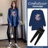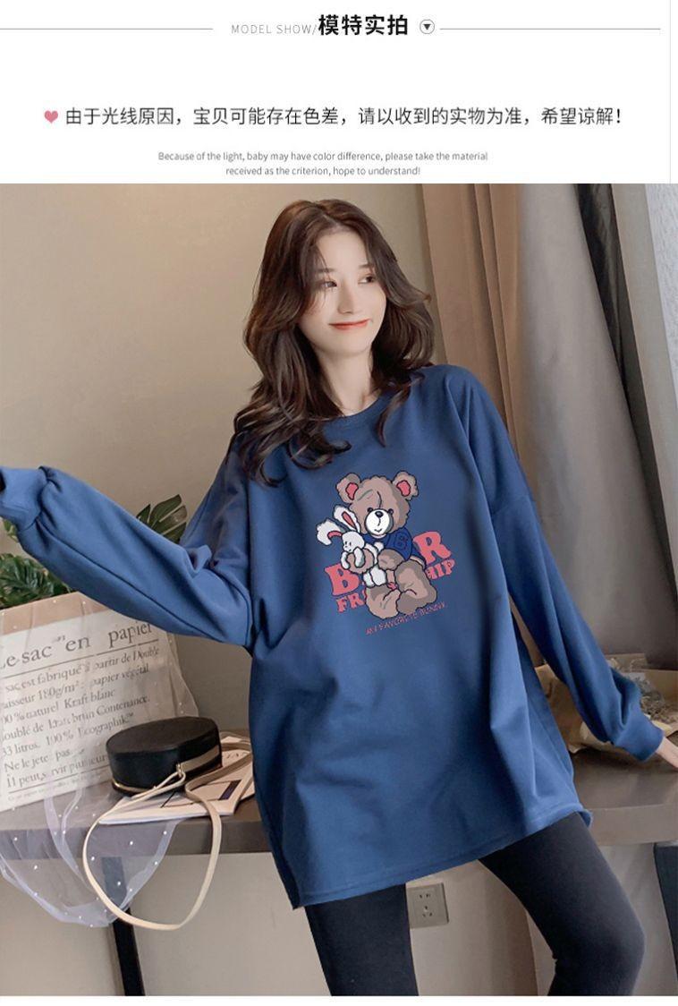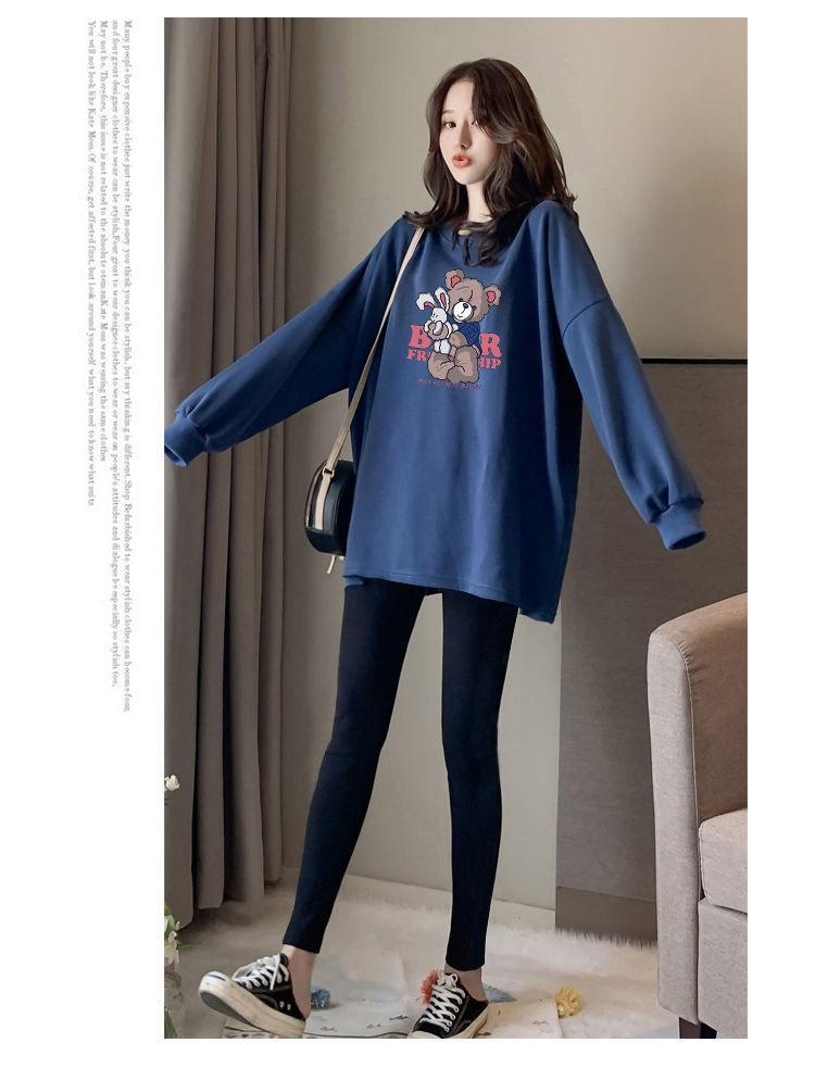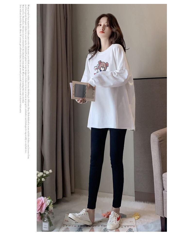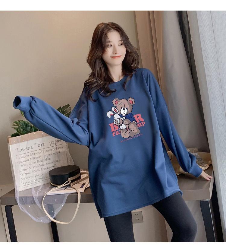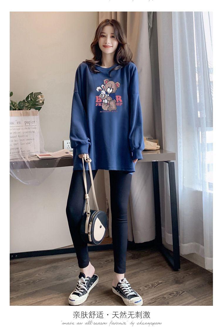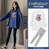 Vestido de Maternidad Traje de Sudadera Primavera y Otoño Largo Medio Manga Larga Soporte Abdominal Pantalones Casuales Dos Piezas Sudadera Holgada de Manga Larga