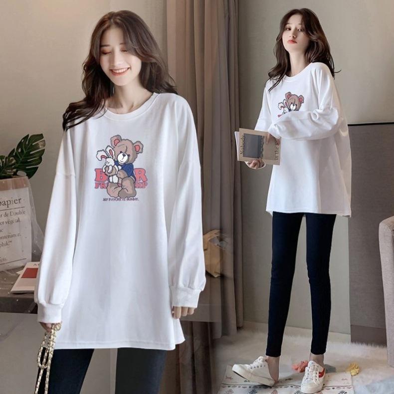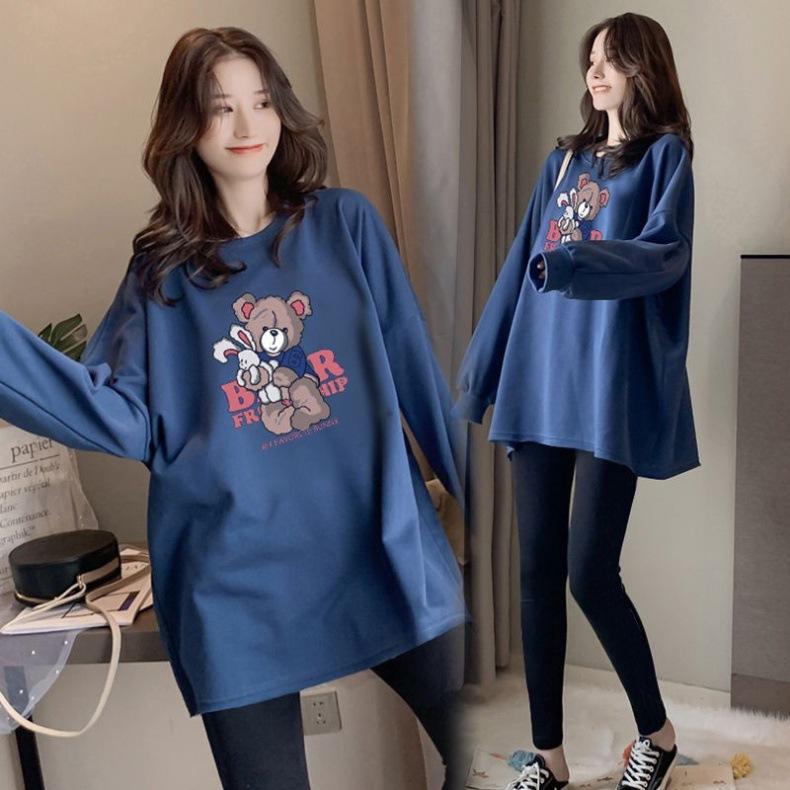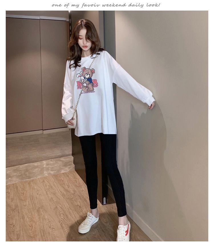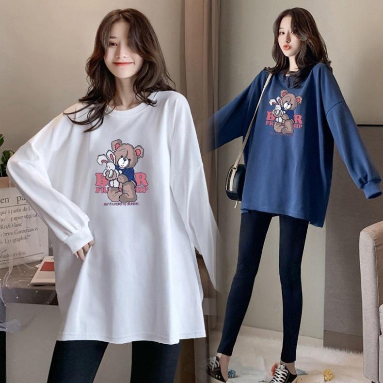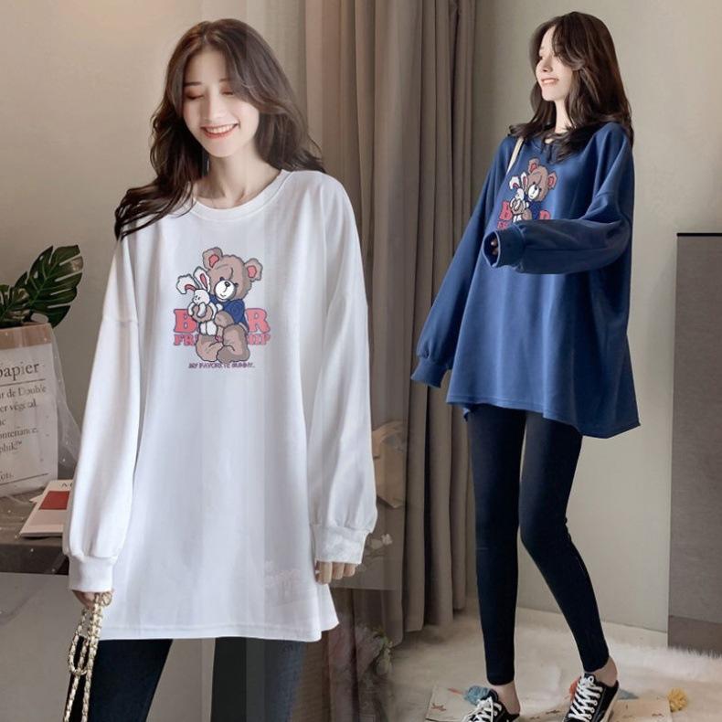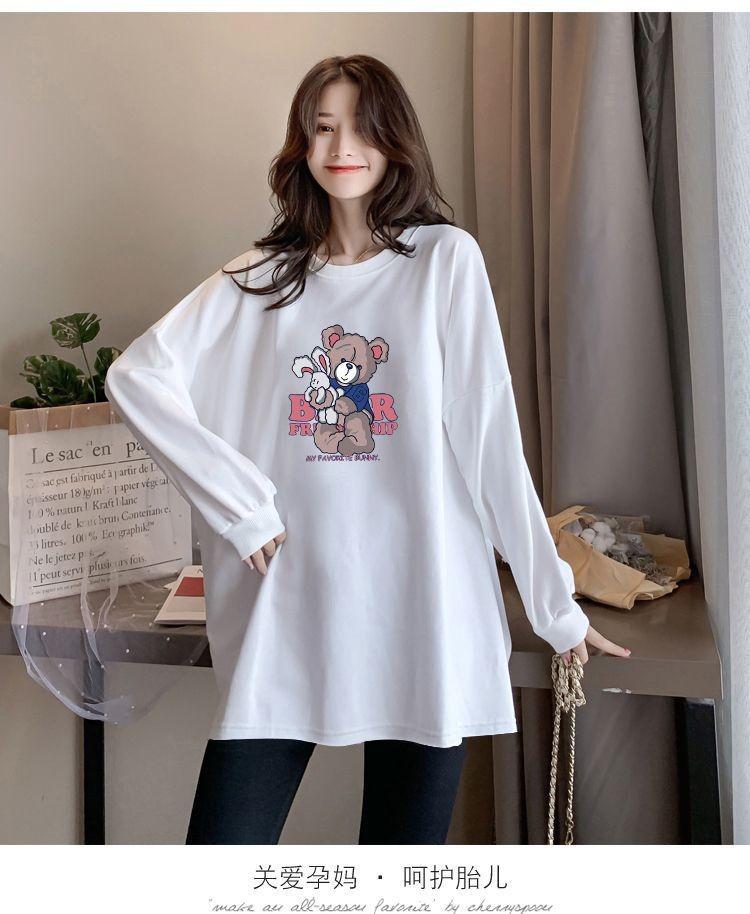Vestido de Maternidad Traje de Sudadera Primavera y Otoño Largo Medio Manga Larga Soporte Abdominal Pantalones Casuales Dos Piezas Sudadera Holgada de Manga Larga