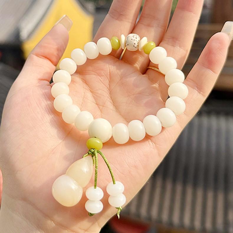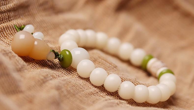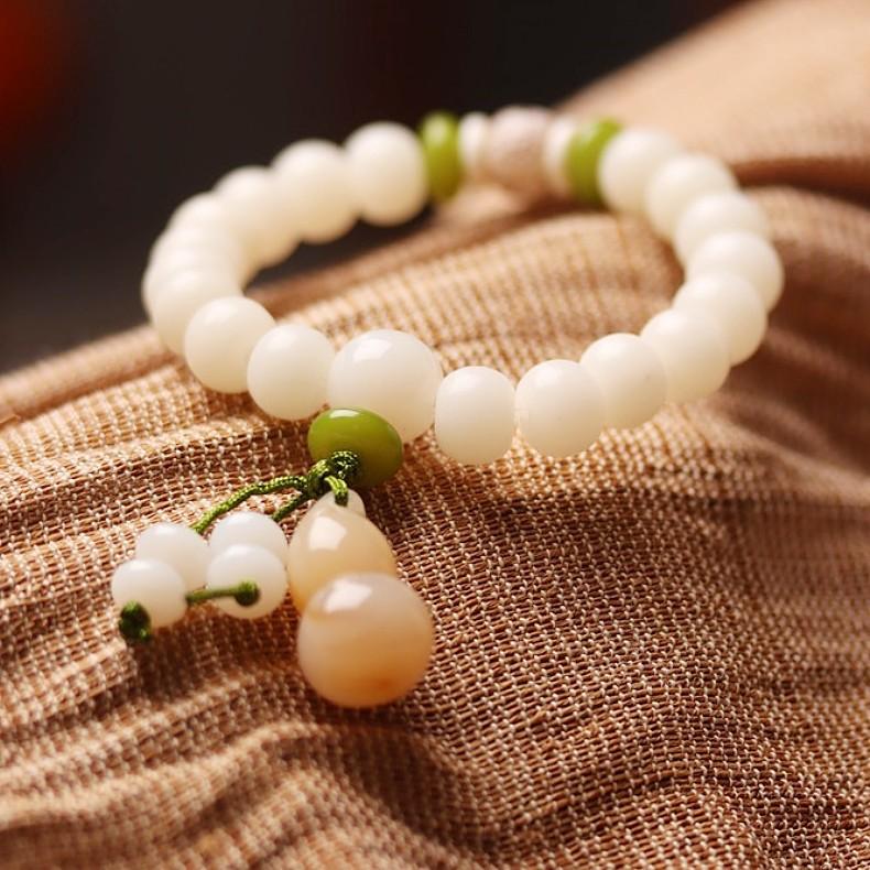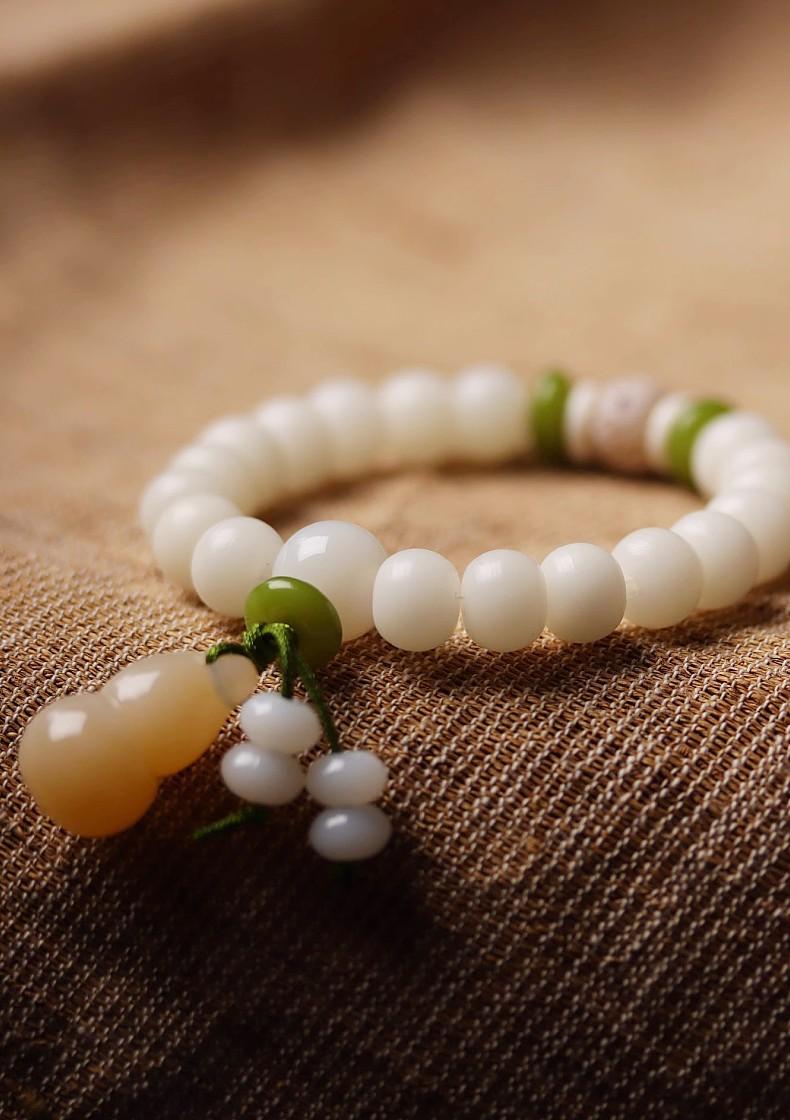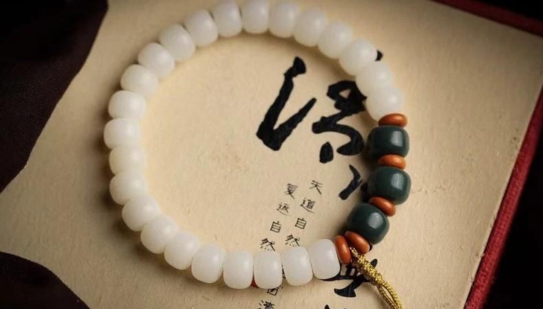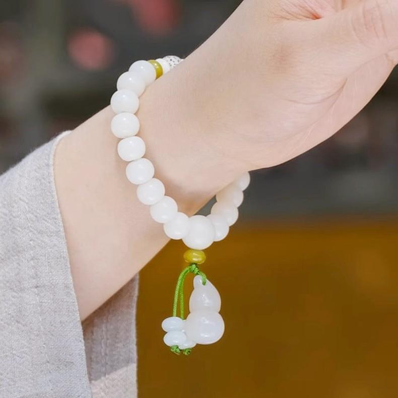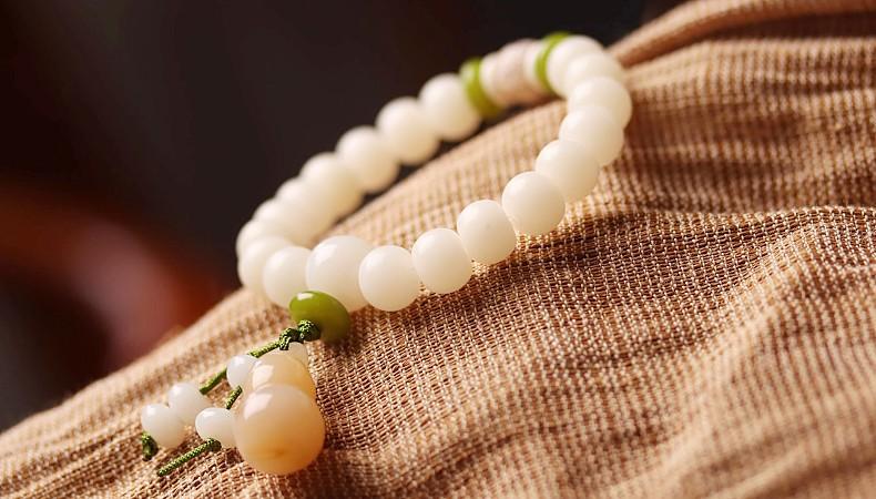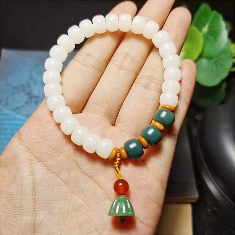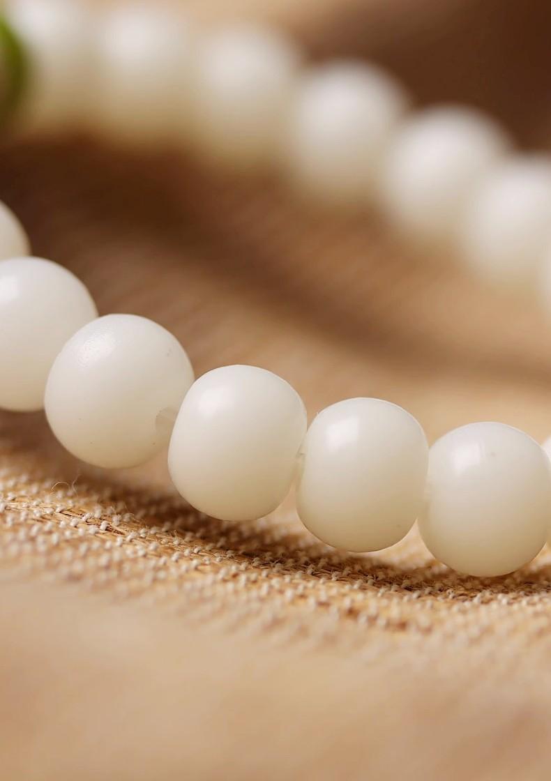 Pulsera de Cuentas Bodhi de Jade Blanco, Pulsera de Raíz Bodhi para Mujer, Regalo de Cuentas Budistas, Cuentas de Oración de Disco Suave para Envolver el Dedo, Estilo Vintage Hecho a Mano