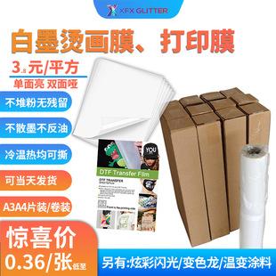 Película de impresión en caliente con tinta blanca, polvo agitado, tinta blanca PET, material de estampado en caliente offset, impresión de patrones, película DTF, venta caliente transfronteriza