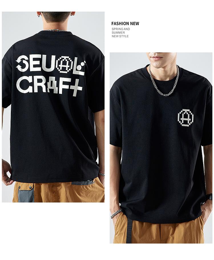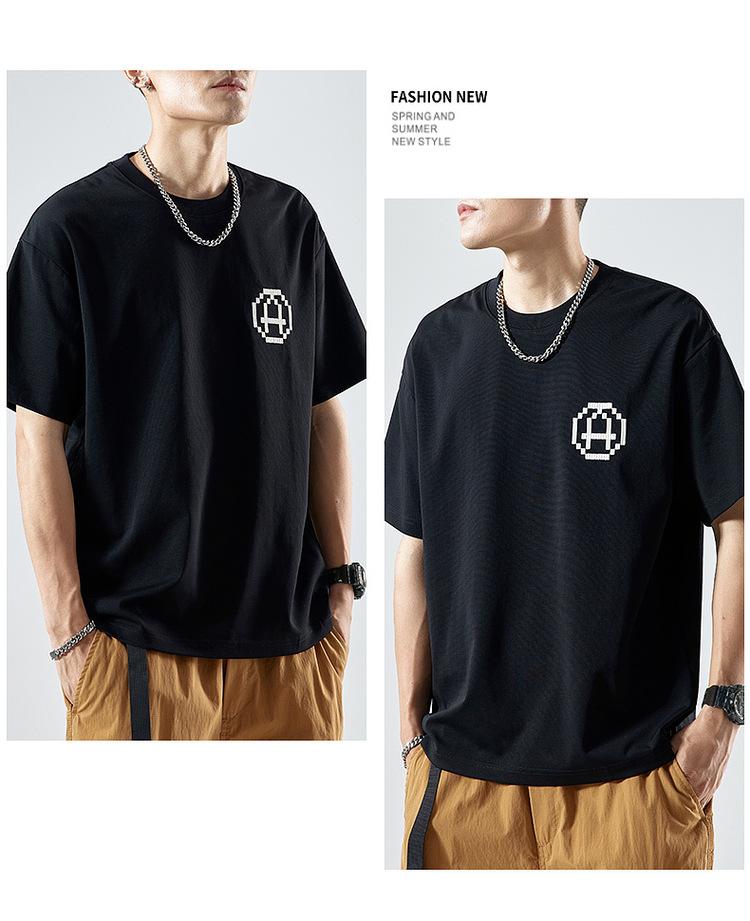 Camiseta holgada informal de verano de algodón puro con estampado de letras en la parte delantera y trasera para hombre, estilo americano, cuello redondo, manga corta, marca de moda.