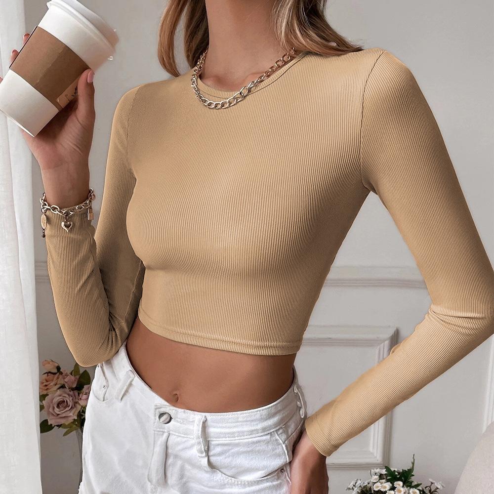 Camiseta de manga larga de punto ajustada, informal, sexy, sin espalda, para mujer europea y americana transfronteriza 2024