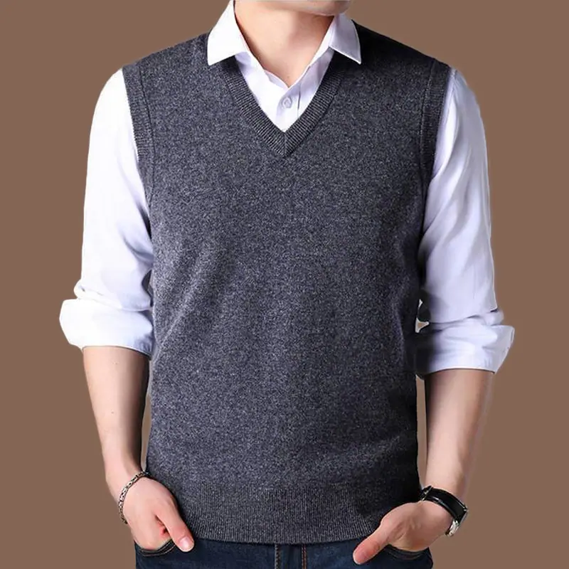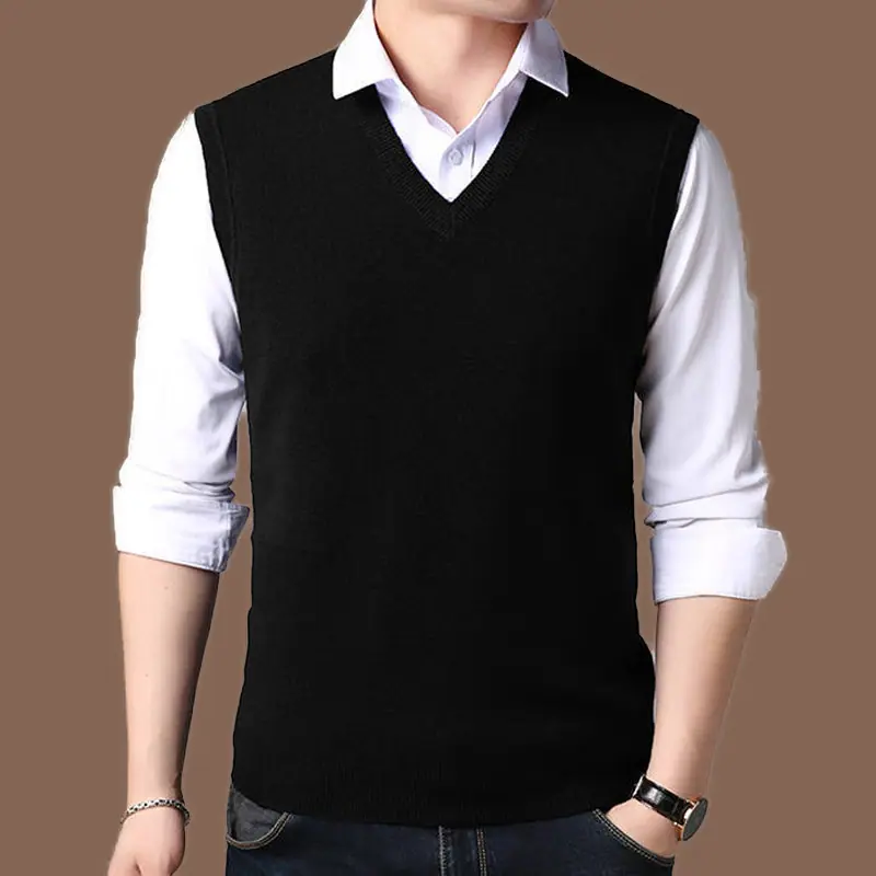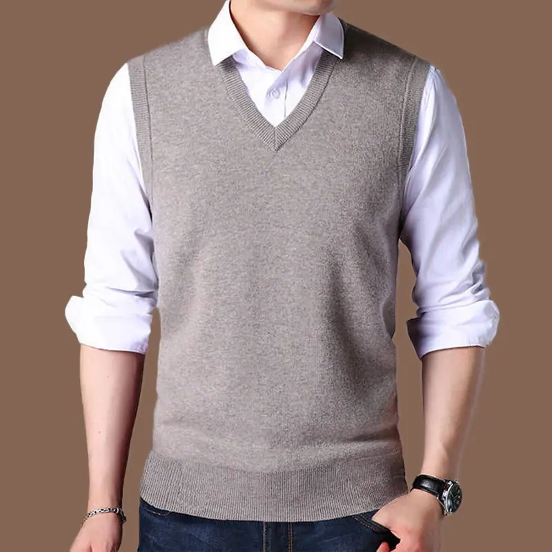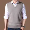 Compra Chaleco de Punto Plano para Hombre de Mediana Edad para Primavera y Otoño Cuello en V Color Puro Sin Mangas Chaleco Dad Jersey Casual al por mayor en Joom.pro