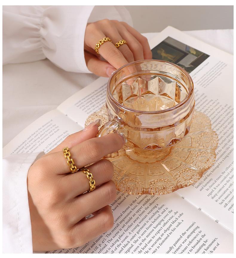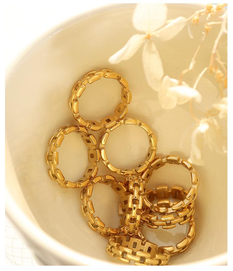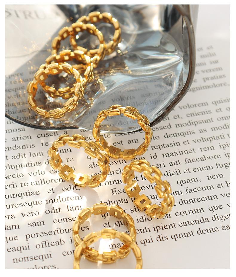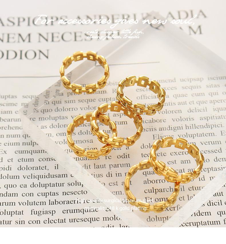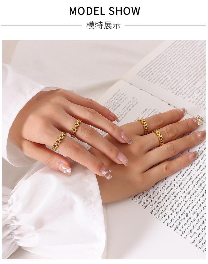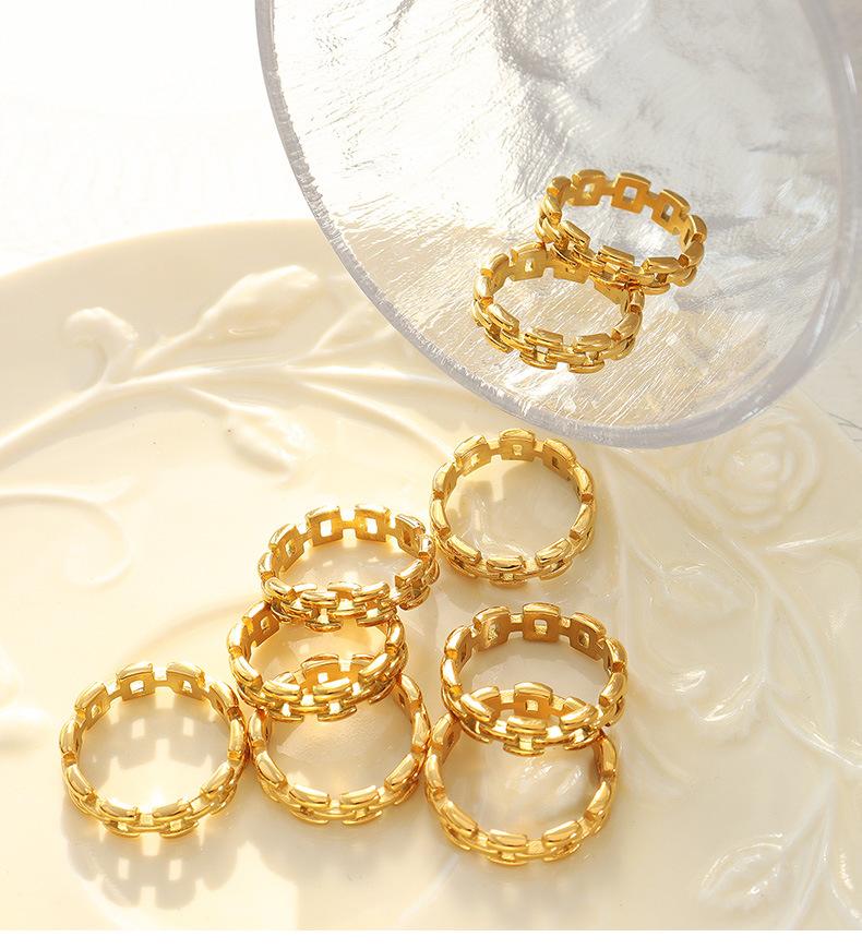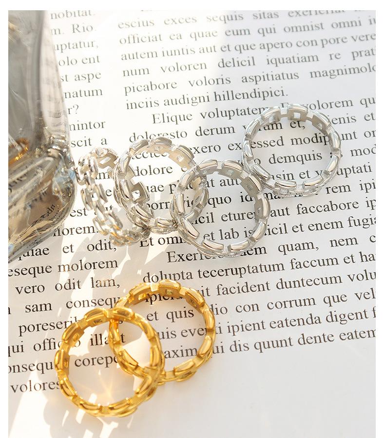 Anillo de dedo índice con cadena hueca con personalidad europea y americana, básico para hombre y mujer, combina con todo, joyería sencilla de moda, acero de titanio A346