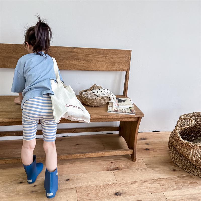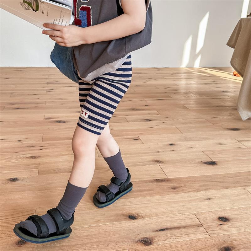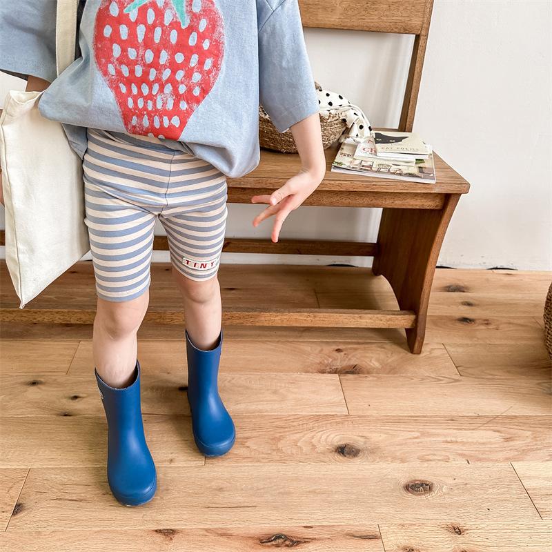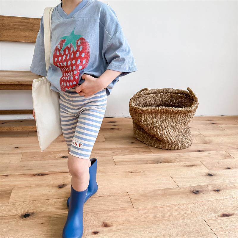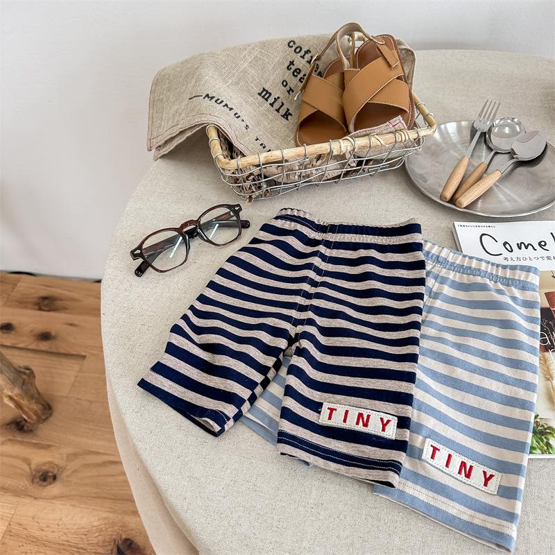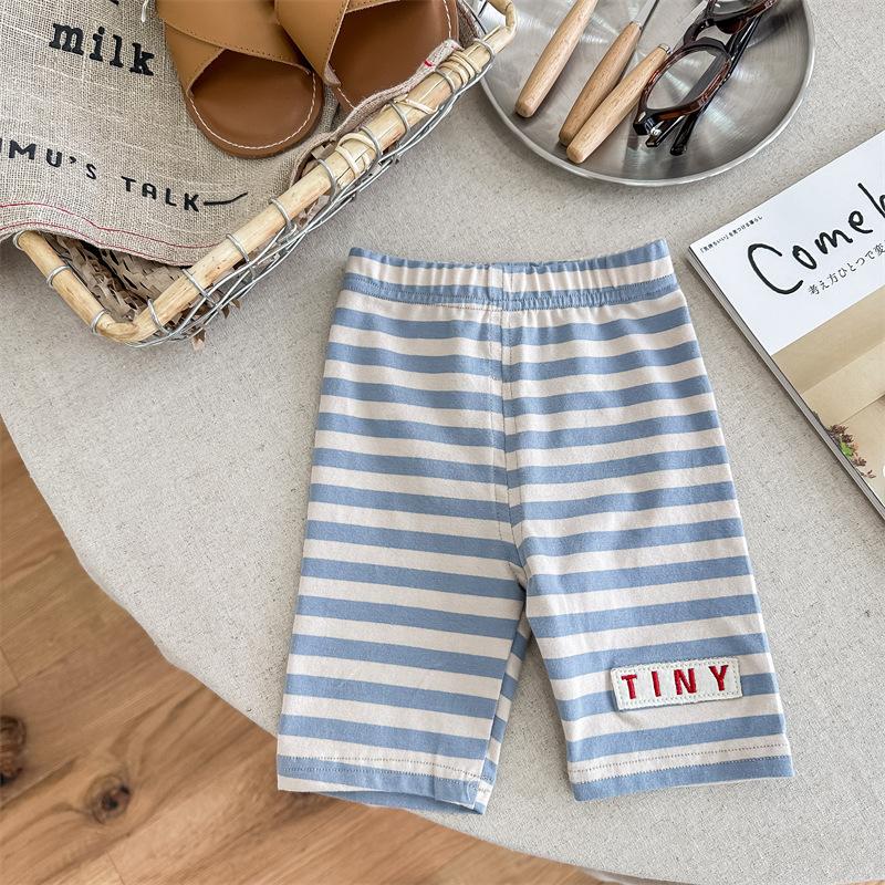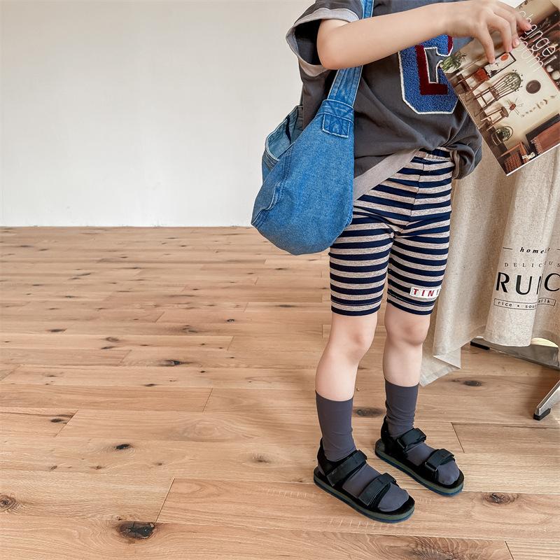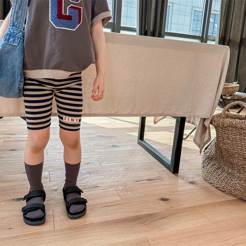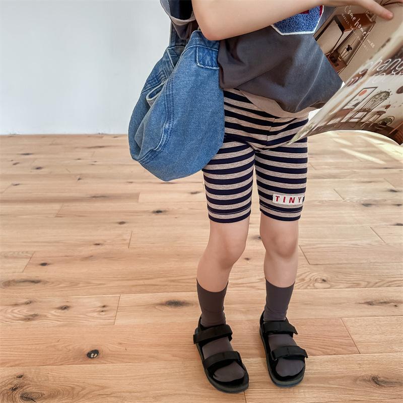 Leggings cortos de verano para niñas, estilo occidental, personalizados, de marca de moda, con letras coreanas, a rayas, pantalones de seguridad, pantalones de cintura media