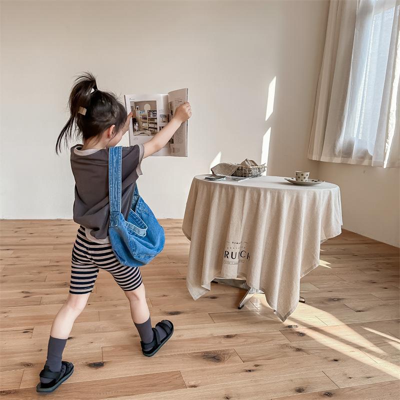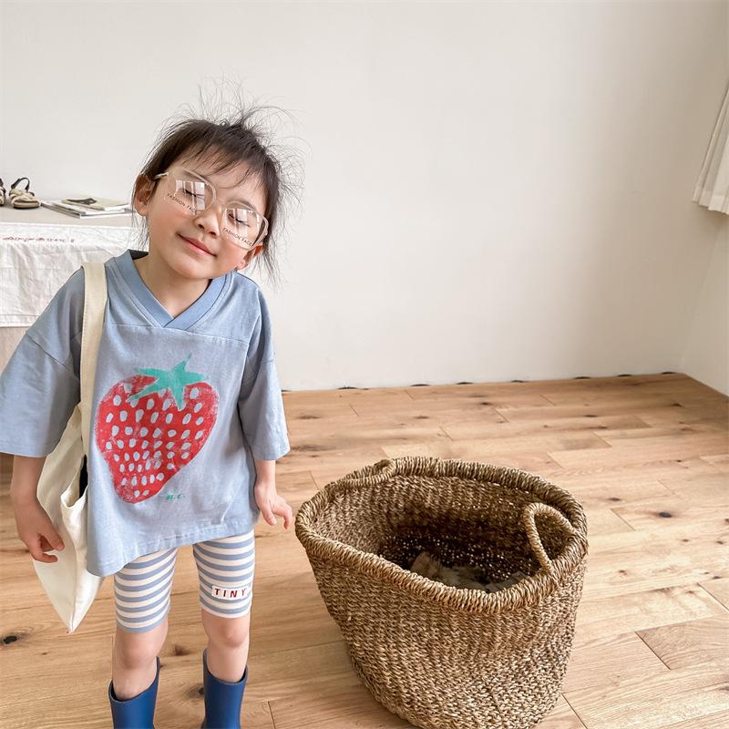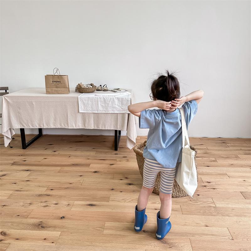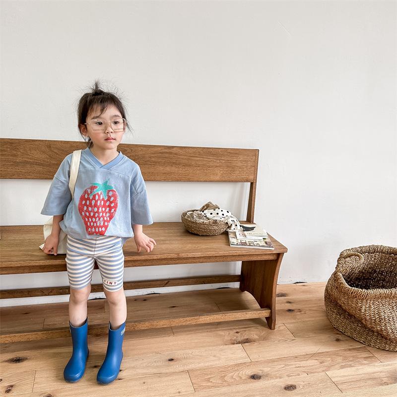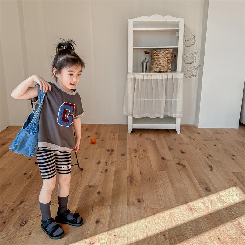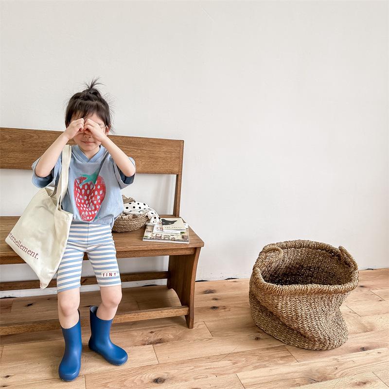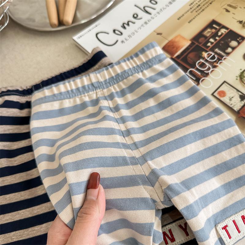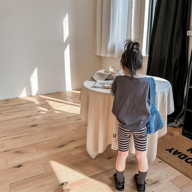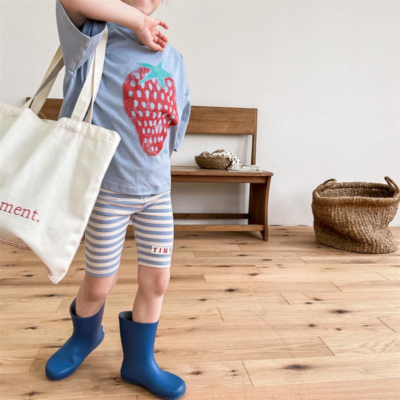 Leggings cortos de verano para niñas, estilo occidental, personalizados, de marca de moda, con letras coreanas, a rayas, pantalones de seguridad, pantalones de cintura media