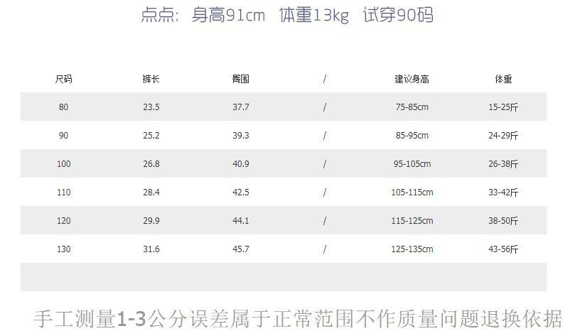 80cm, 90cm, 100cm, 110cm, 120cm, 130cm
