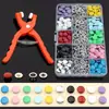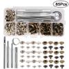Contenido del producto: Una caja contiene: bronce, blanco plateado, dorado, negro pistola, bronce negro, botones negros pintados con aerosol, 10 juegos de cada color + un juego de herramientas 633# del modelo correspondiente + caja de almacenamiento