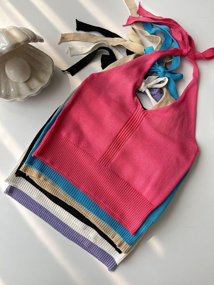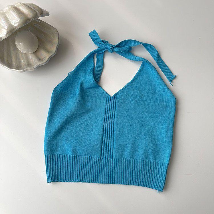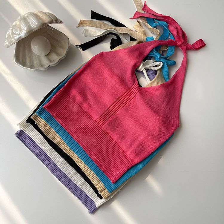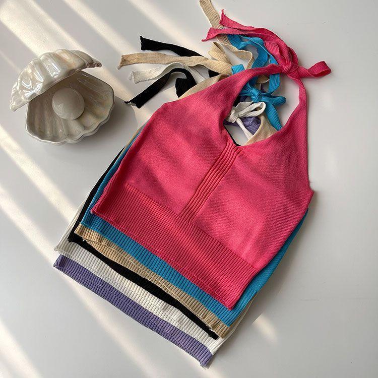 Compra Chaleco de verano para niñas, estilo occidental, personalizado, de marca de moda coreana, tejido, cuello de color sólido, prenda exterior al por mayor en Joom.pro