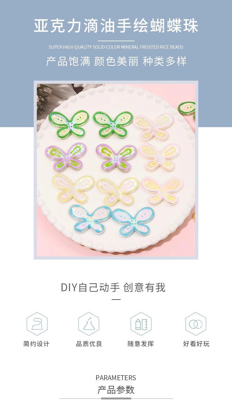 Pulsera hecha a mano con cuentas sueltas de mariposas pintadas a mano con aceite acrílico, cadena para teléfono móvil, colgante para bolso, accesorios de material
