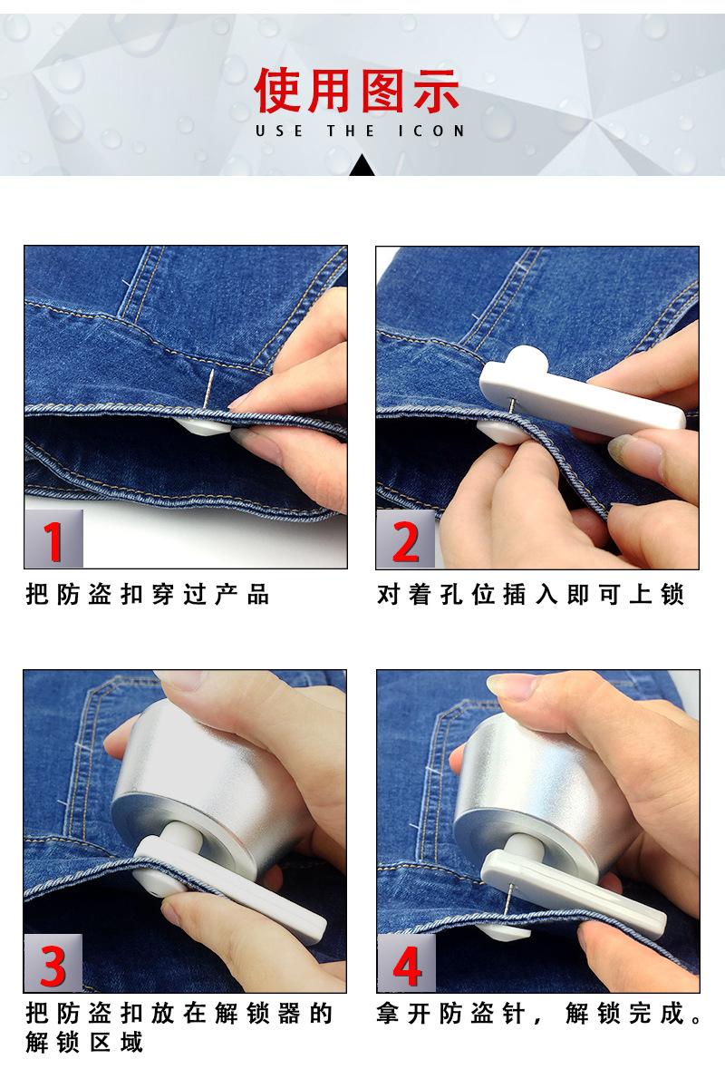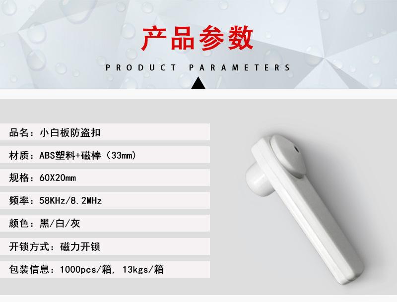 Etiqueta plana antirrobo con hebilla magnética, nueva marca de material ABS, con clavos, etiqueta antirrobo para ropa de supermercado, hebilla magnética acústica antirrobo.