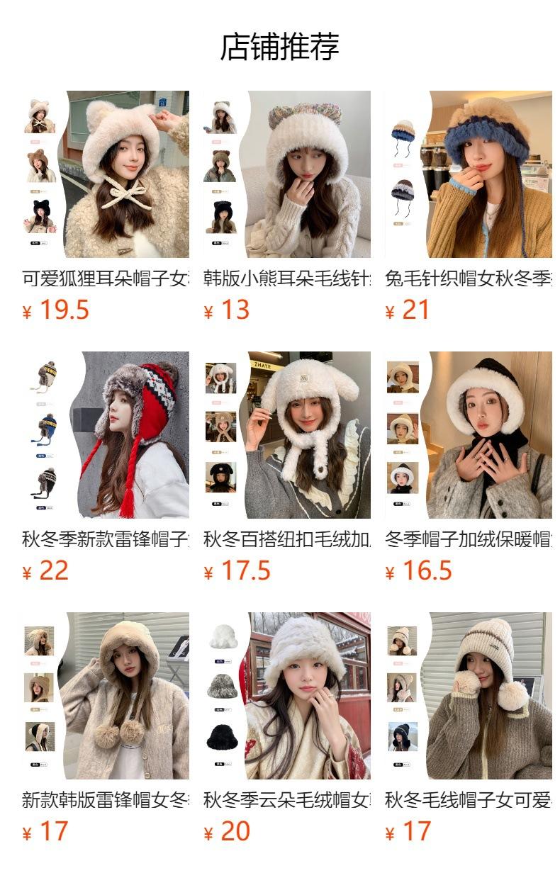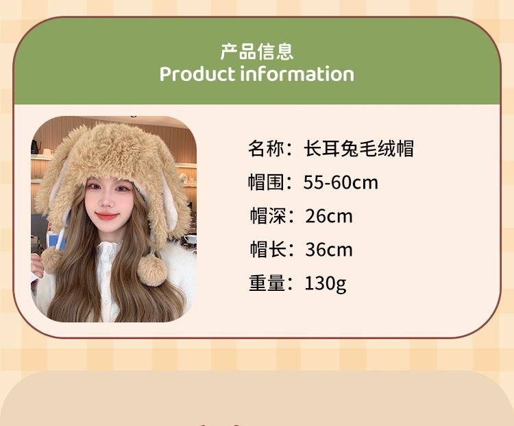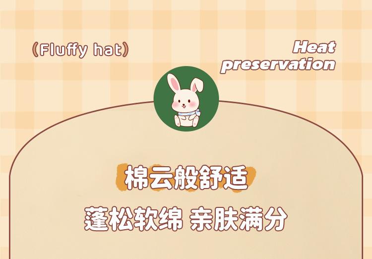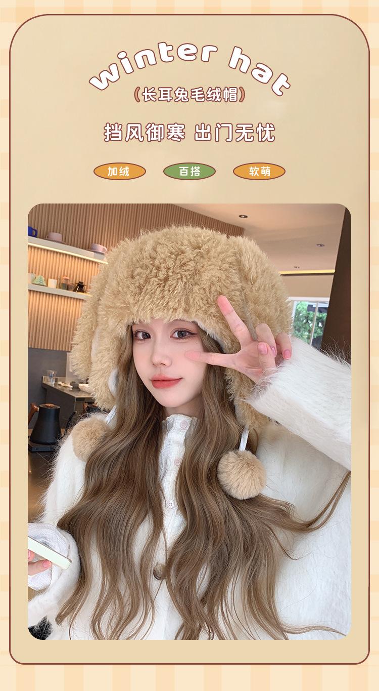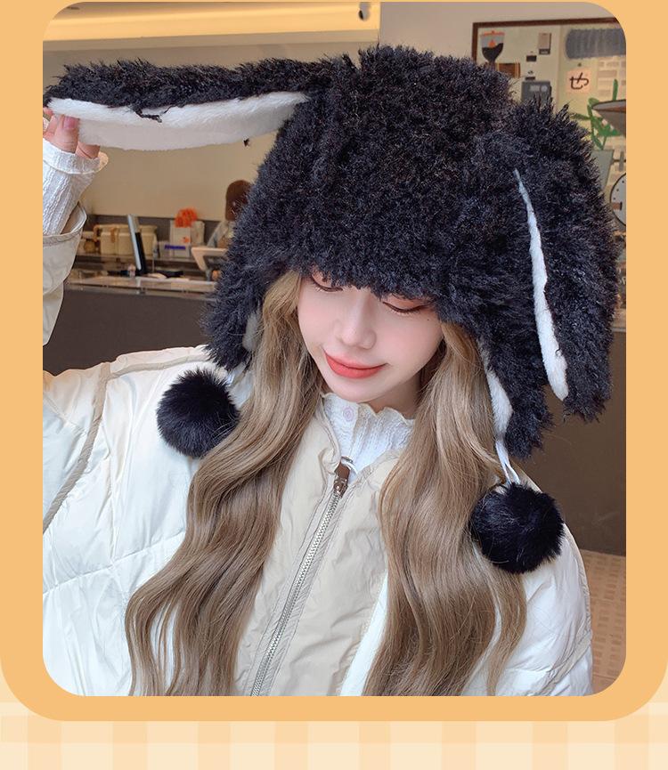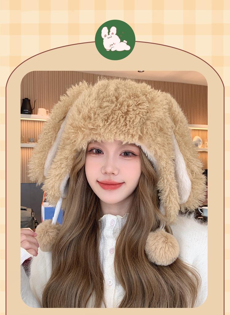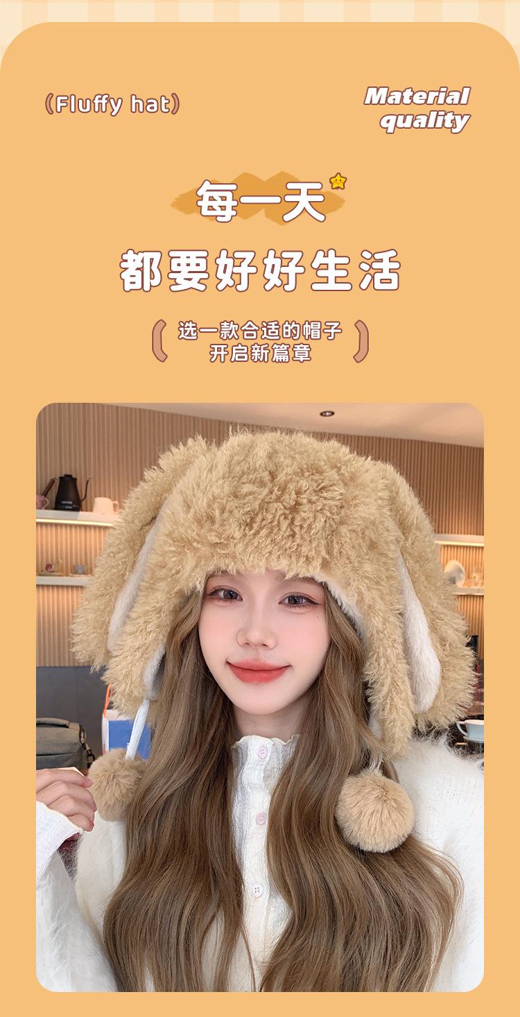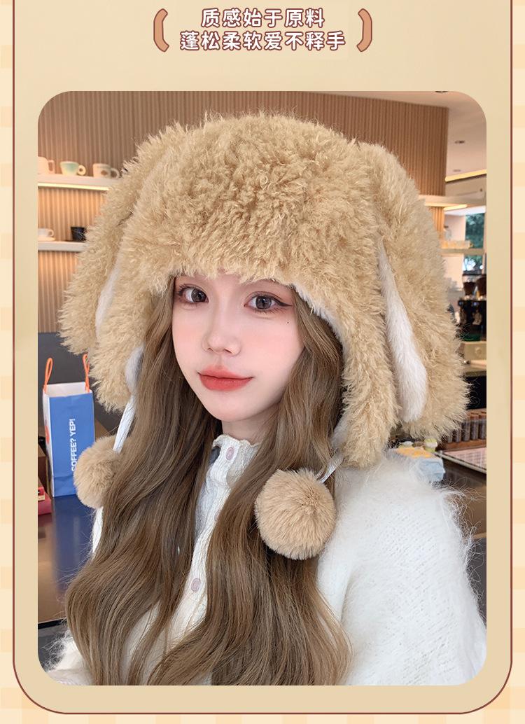 Invierno Engrosado Blanco Felpa Orejas de Conejo de Dibujos Animados Gorro Lei Feng para Mujer Reductor de Edad Dulce Lindo Cálido Protección para las Orejas Gorro Pulóver
