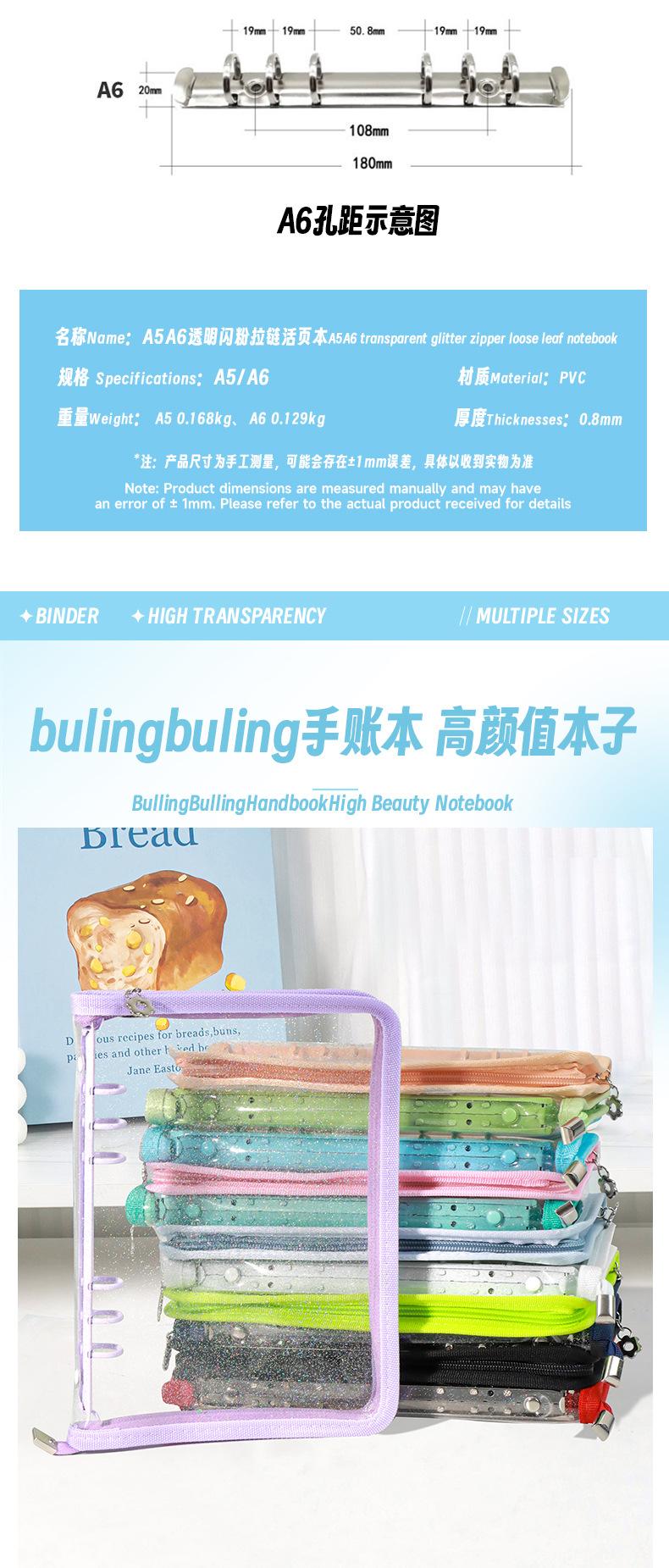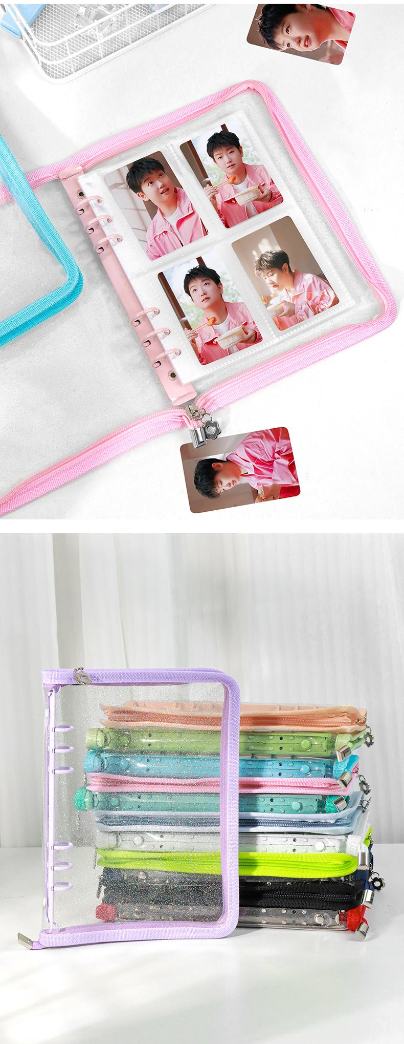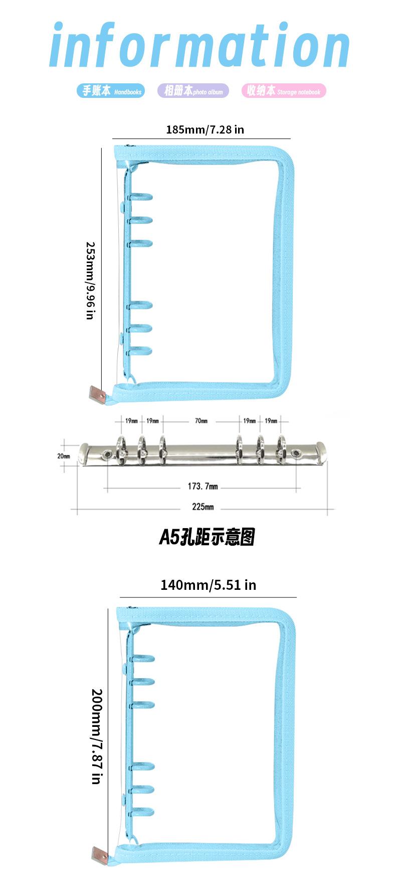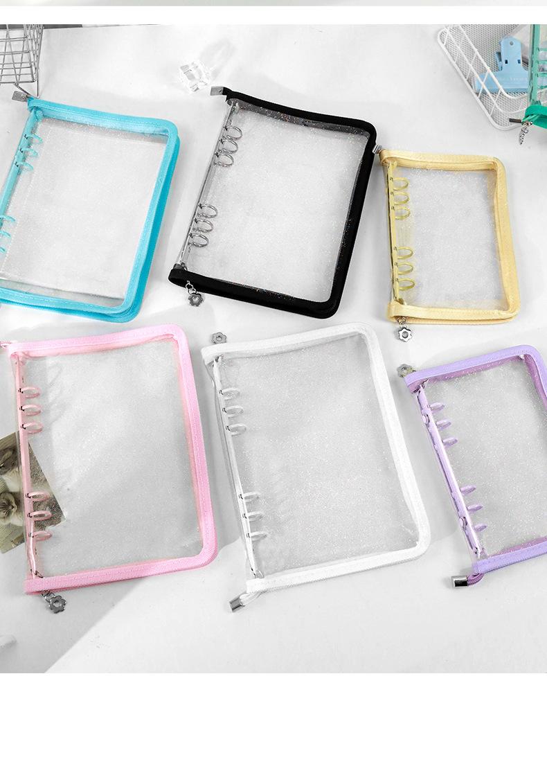 Nueva combinación de estilo coreano a5 transparente de 6 agujeros con cremallera, cuaderno de PVC transparente de hojas sueltas, libro de viaje de hojas sueltas, libro de contabilidad manual