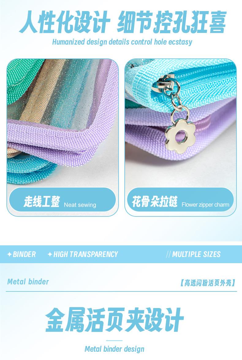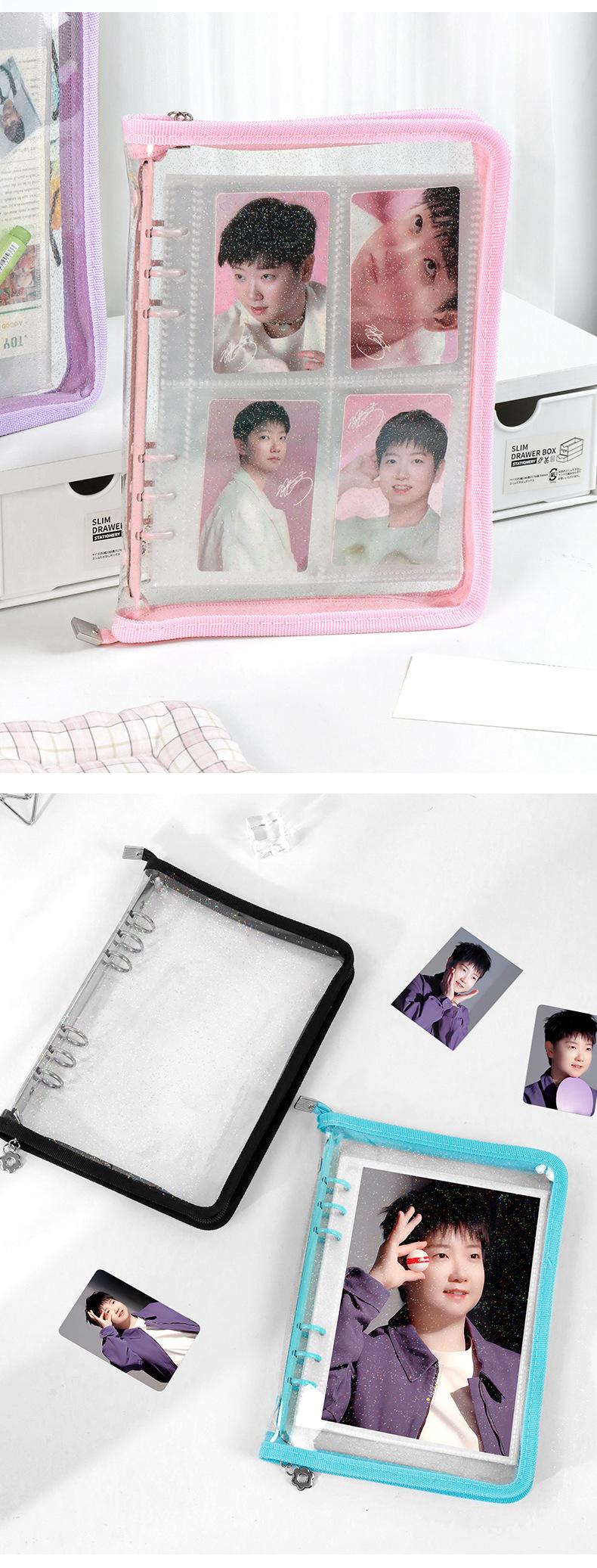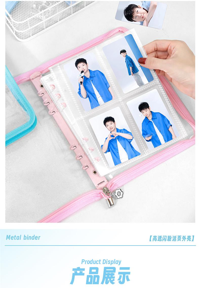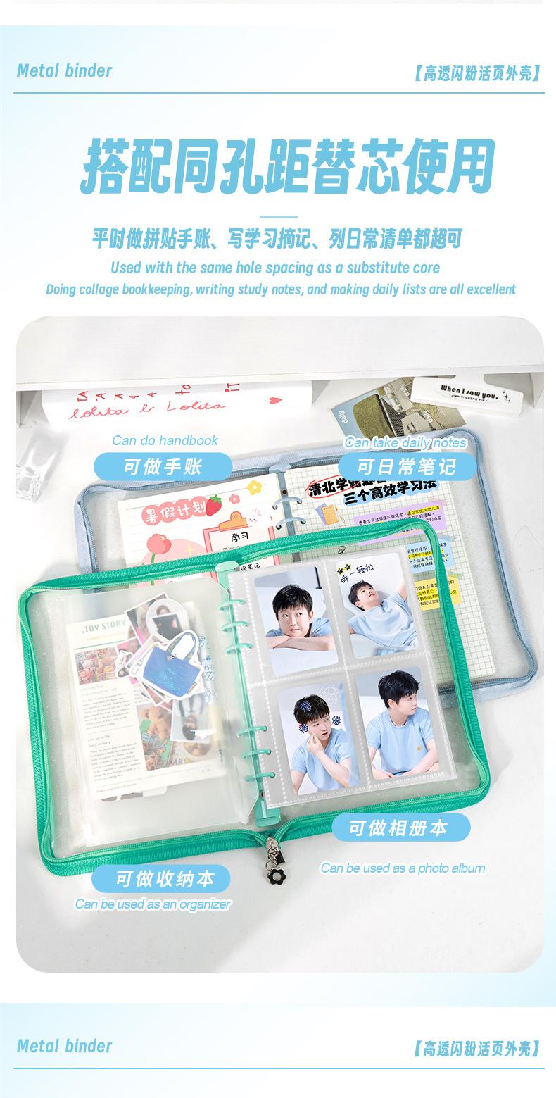 Nueva combinación de estilo coreano a5 transparente de 6 agujeros con cremallera, cuaderno de PVC transparente de hojas sueltas, libro de viaje de hojas sueltas, libro de contabilidad manual