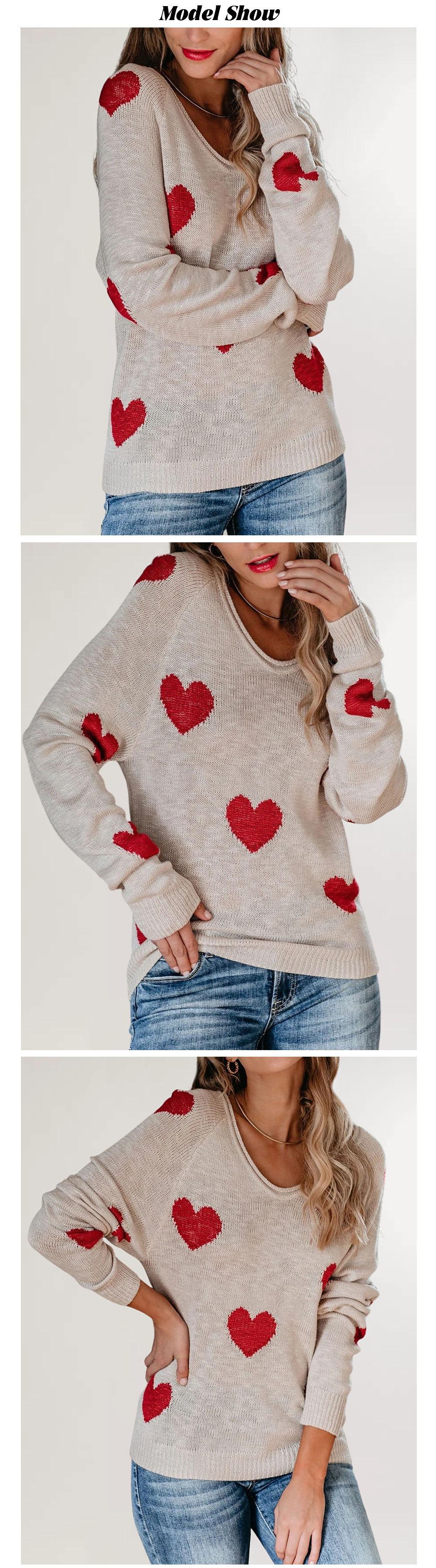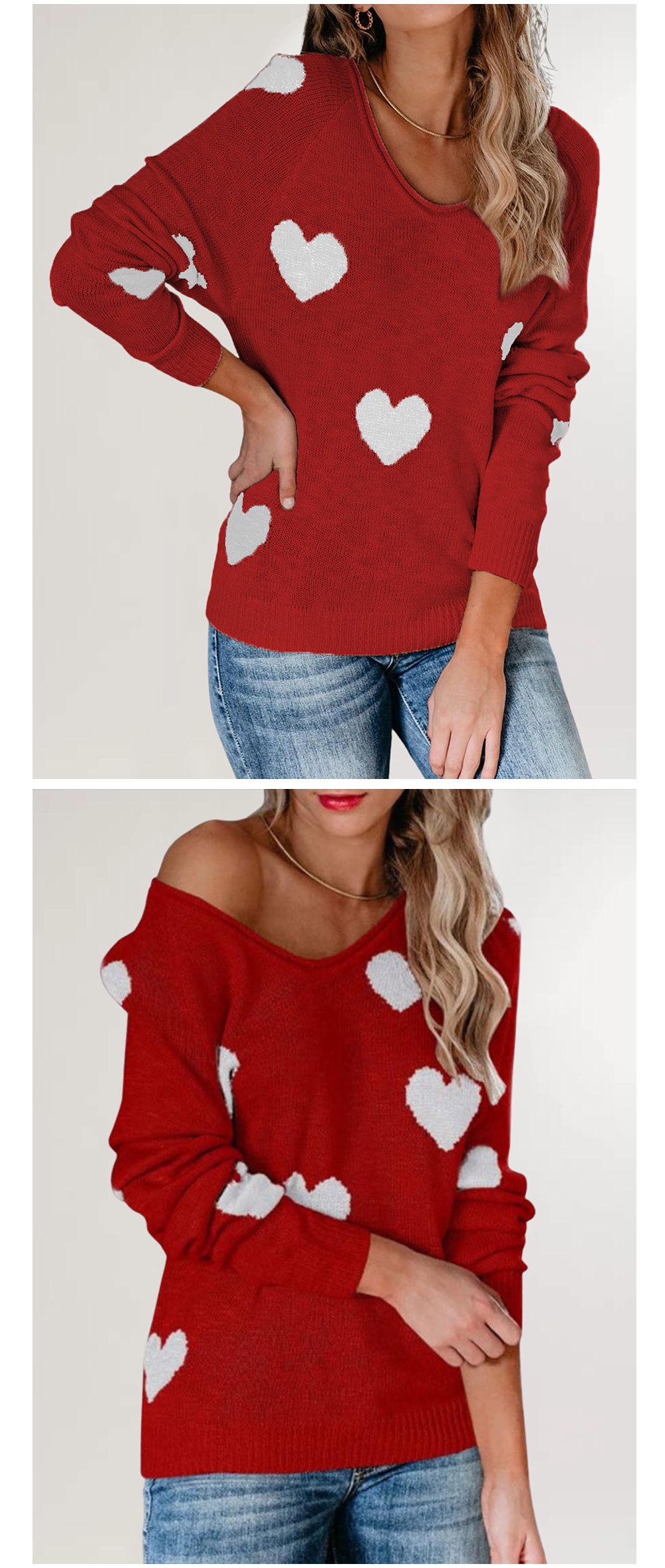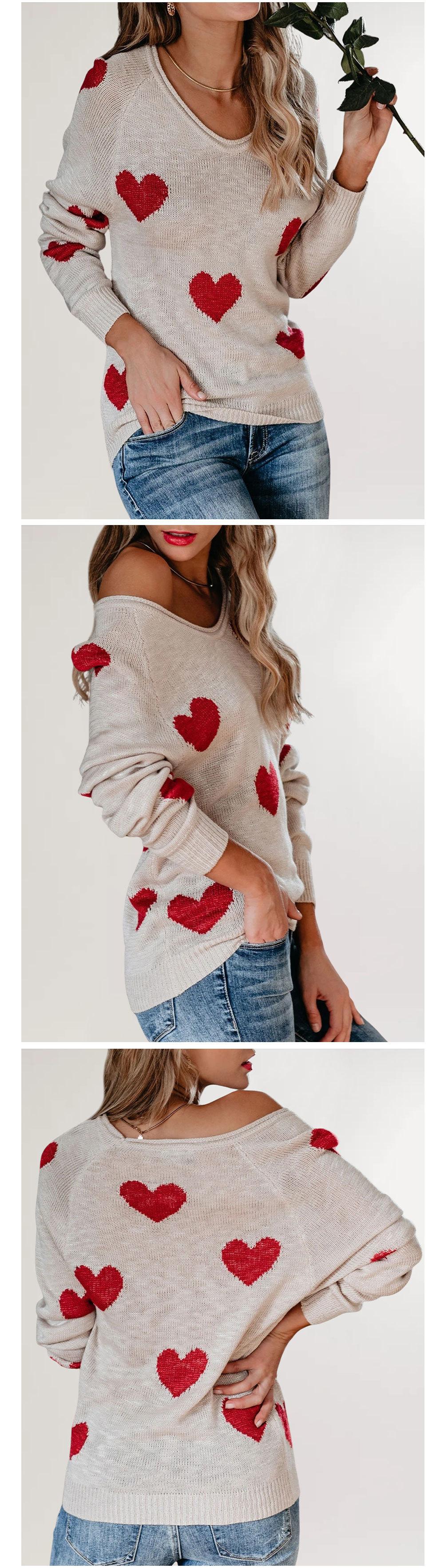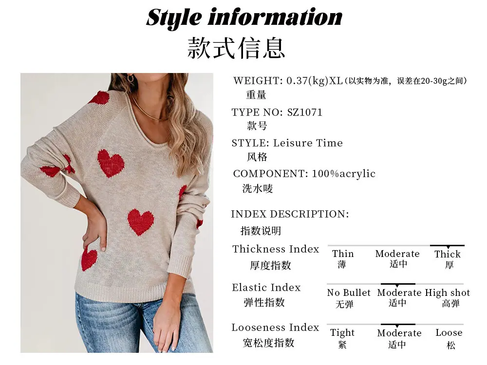 Otoño e Invierno 2025 Nuevo Transfronterizo Amazon Suelto Corazón San Valentín Cuello en V Tejido de punto Europeo y Americano Jersey de punto para mujer