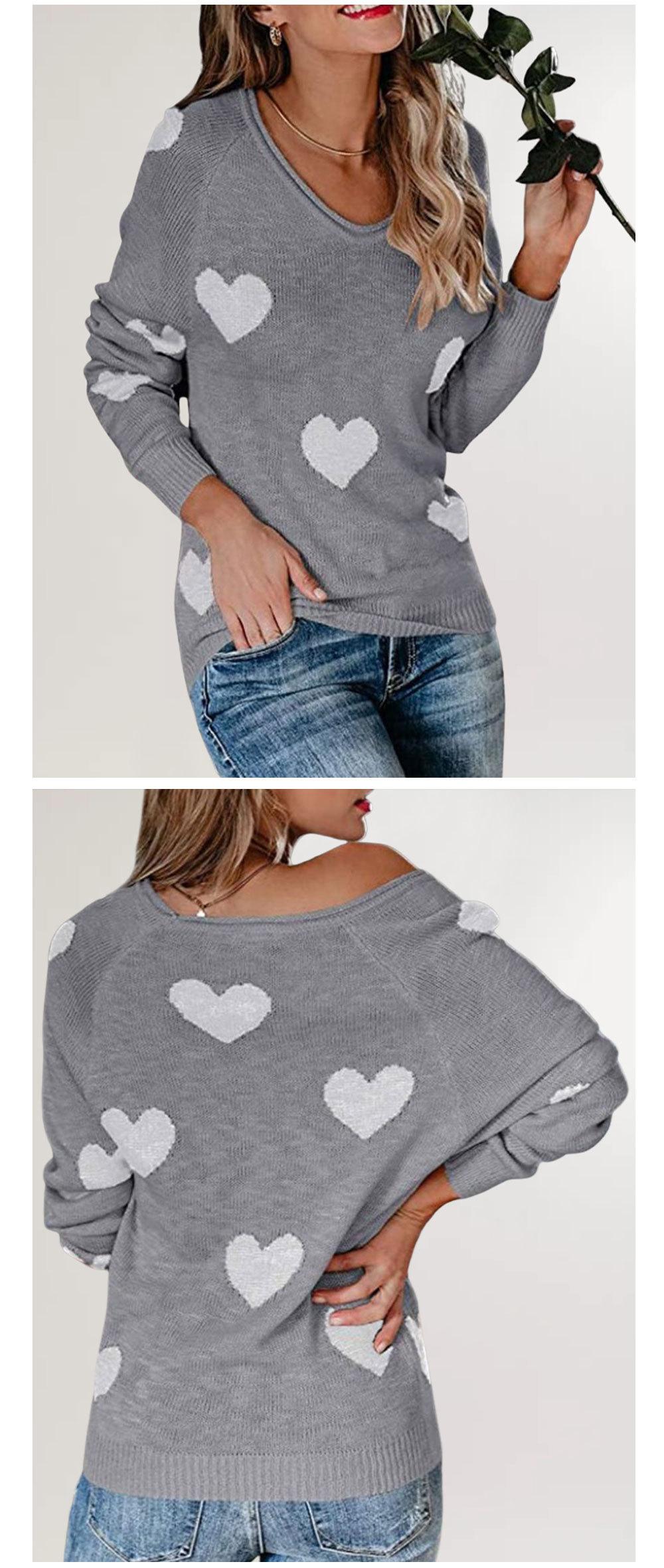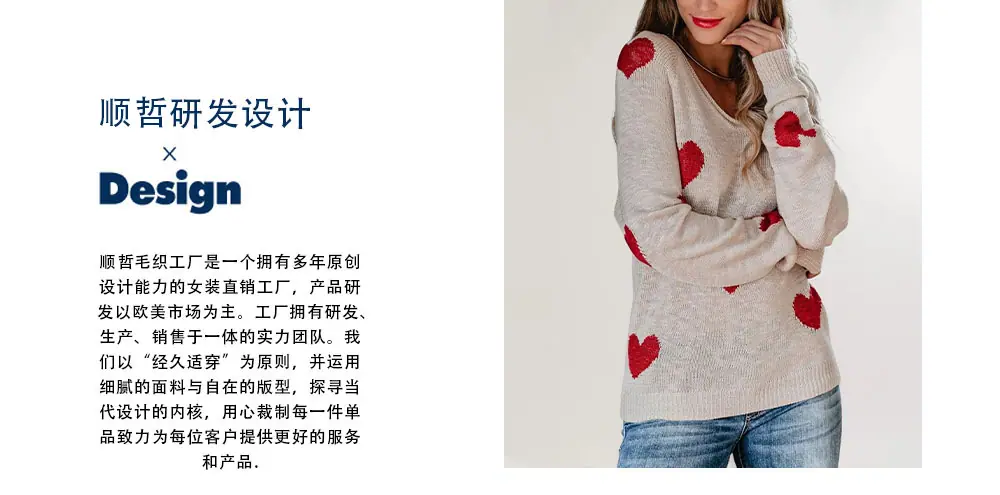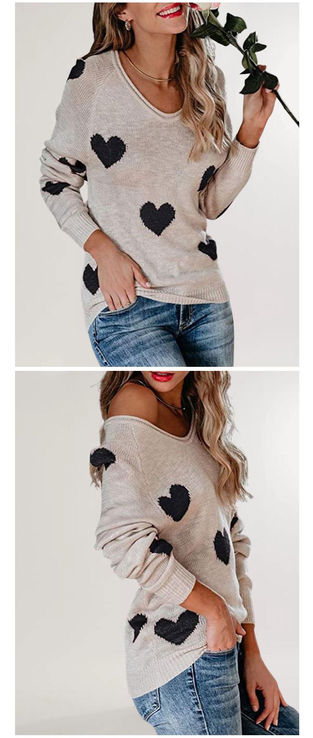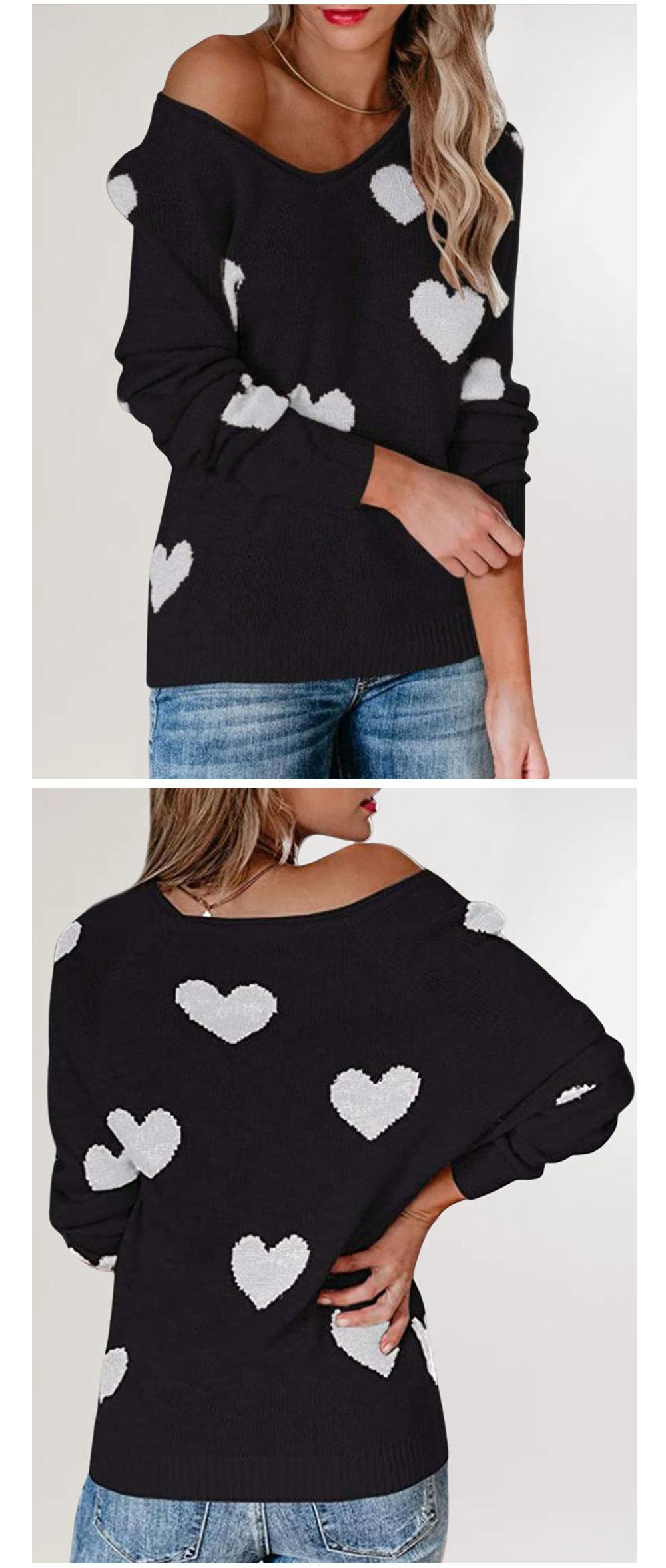Otoño e Invierno 2025 Nuevo Transfronterizo Amazon Suelto Corazón San Valentín Cuello en V Tejido de punto Europeo y Americano Jersey de punto para mujer