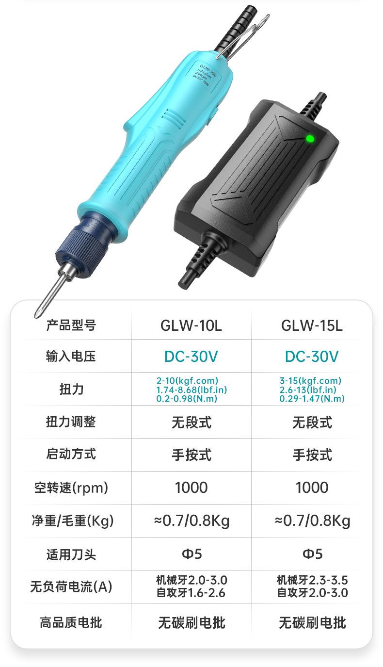 Destornillador eléctrico GLW de luz blanca al por mayor, destornillador eléctrico sin escobillas, destornillador automático con torsión ajustable, destornillador de grado industrial