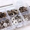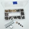 Contenido del producto: 25 juegos de hebillas metálicas de bronce #831, 25 juegos de hebillas metálicas blanco plateado, juego de 4 piezas de herramientas de instalación manual #831 (incluido)