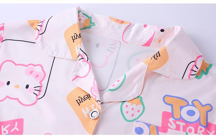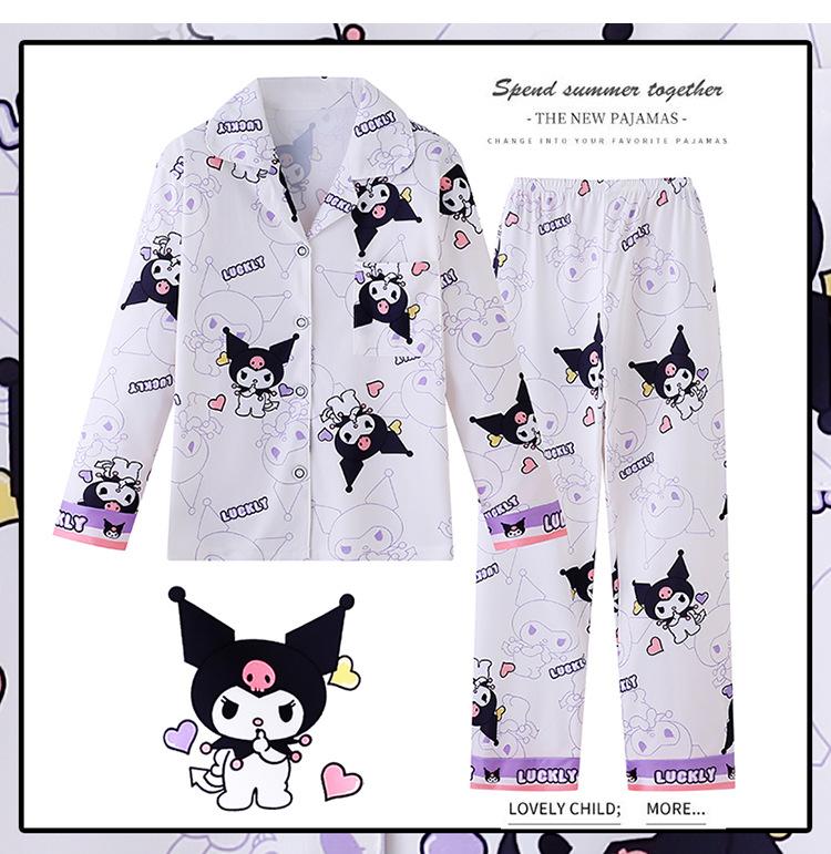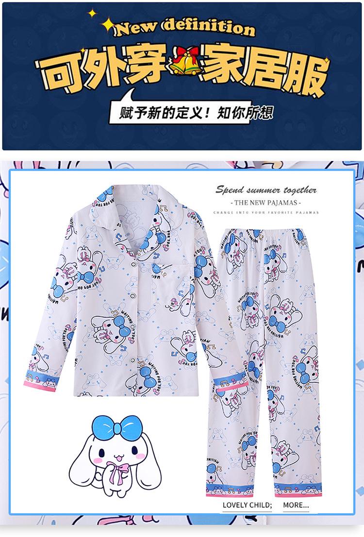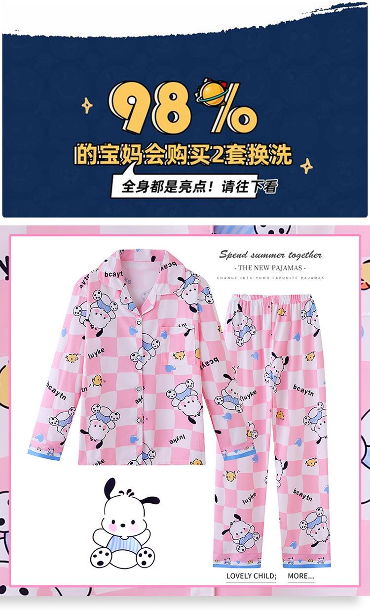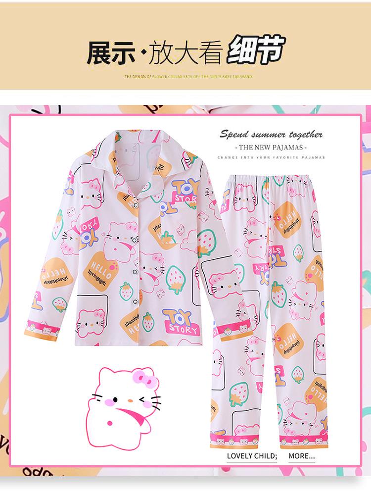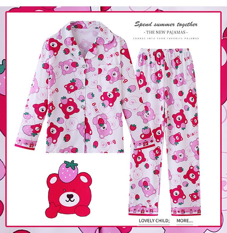 Pijamas infantiles de comercio exterior para niños y niñas, primavera y otoño, cárdigan fino de manga larga con solapa de dibujos animados, traje de ropa de casa para niños medianos y grandes