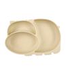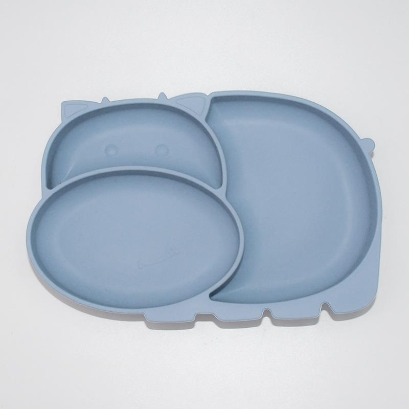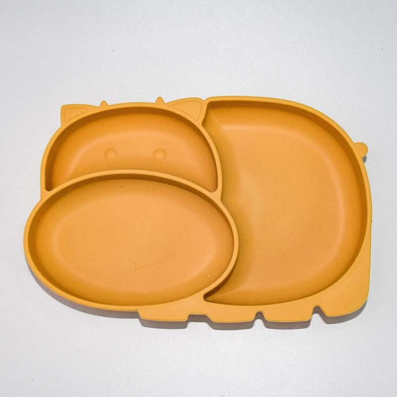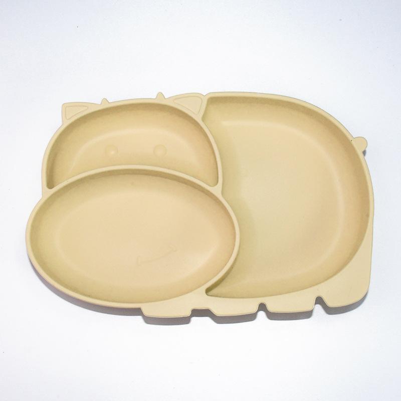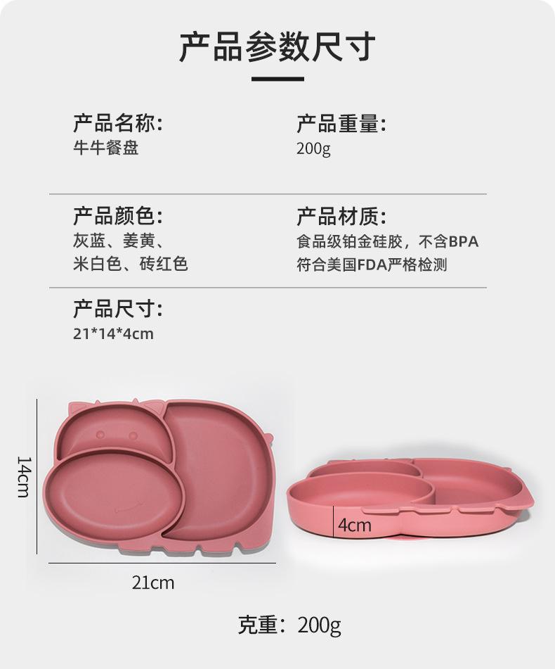 Plato de comida para bebé de silicona de grado alimenticio con ventosa anticaída con dibujos de ganado integrados, vajilla complementaria para niños.
