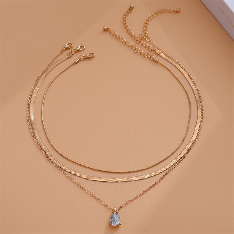 Nombre del producto: Cadena metálica gota de agua diamante temperamento cadena clavicular