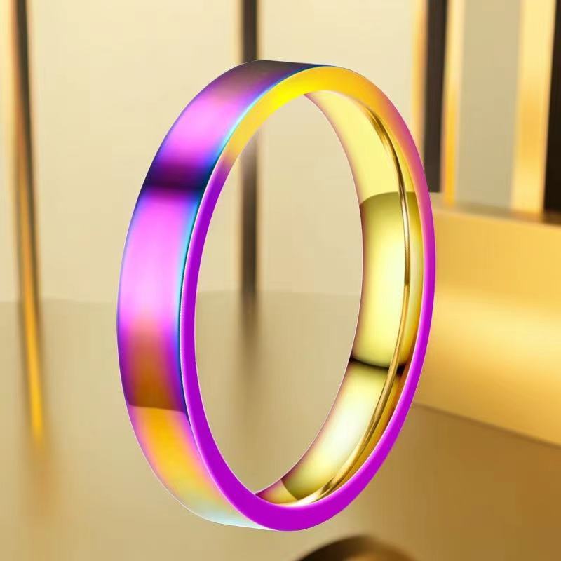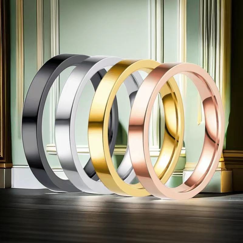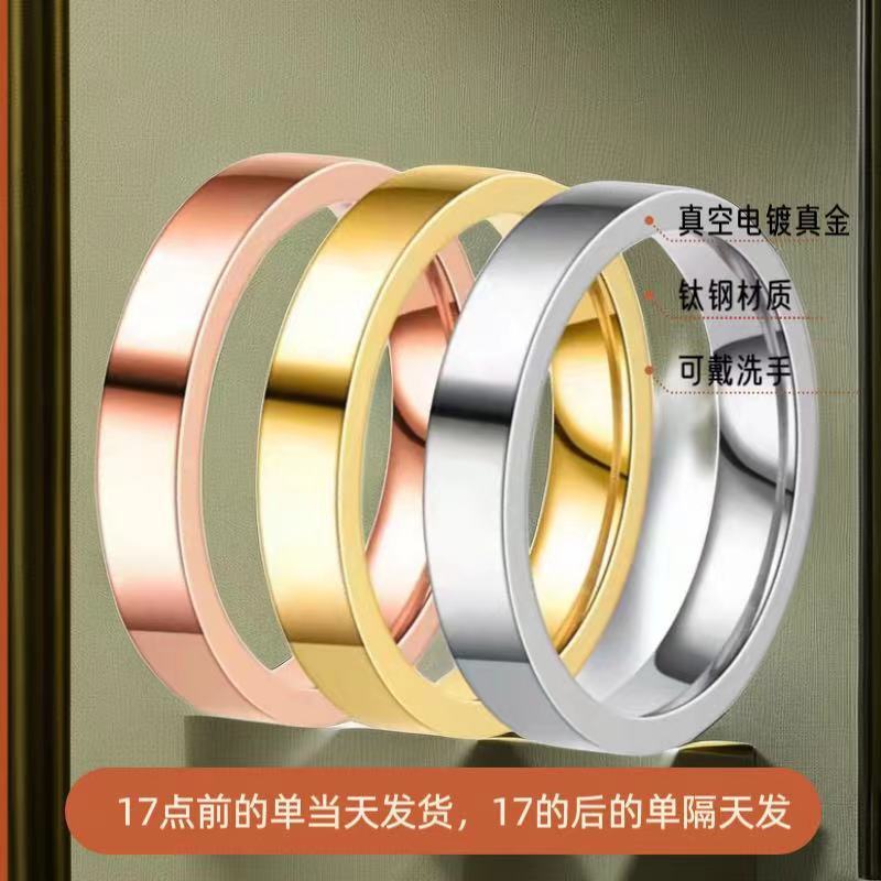 Anillo de acero de titanio transfronterizo de Europa y Estados Unidos. Venta al por mayor para mujeres. No se decolora. Estilo nicho. Anillo liso de acero inoxidable ligero de lujo de alta gama para niñas.