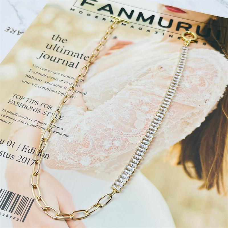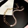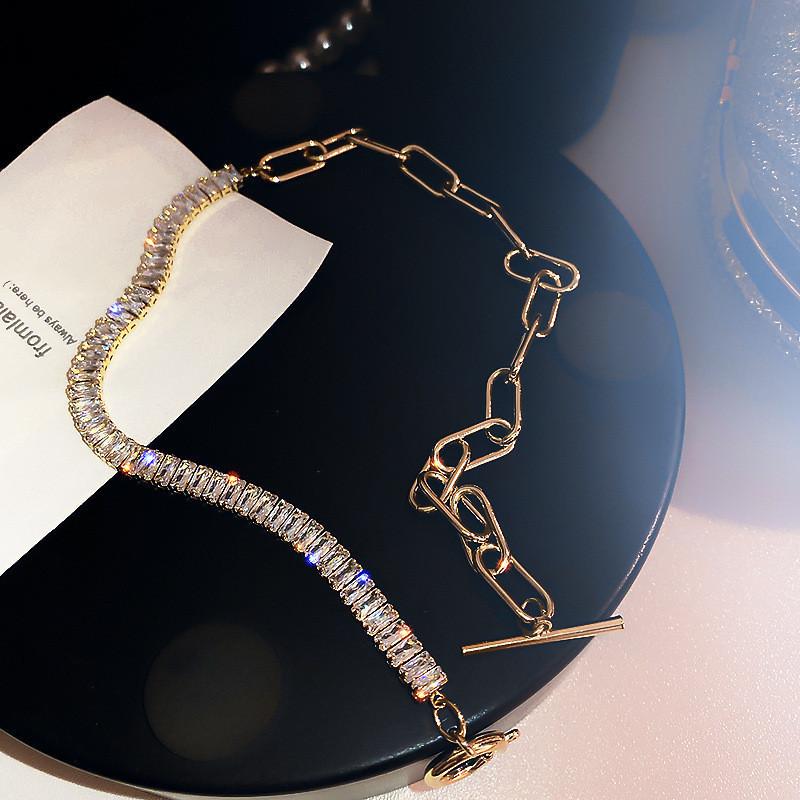Nuevo collar geométrico con costuras de circonita transfronterizas, estilo frío de Corea del Sur, cadena de clavícula con personalidad, cadena de cuello asimétrica con diamantes.