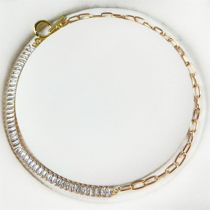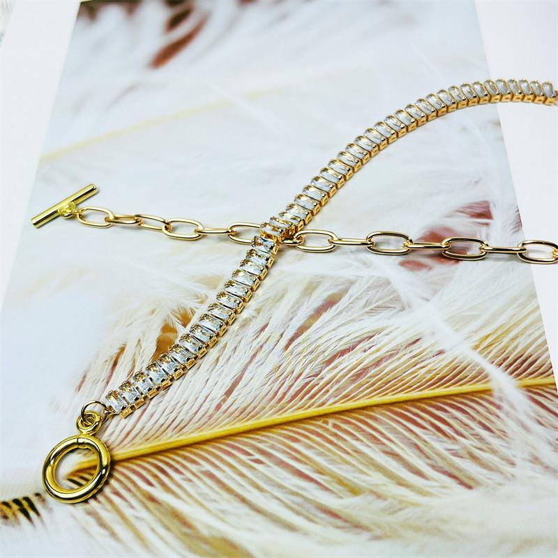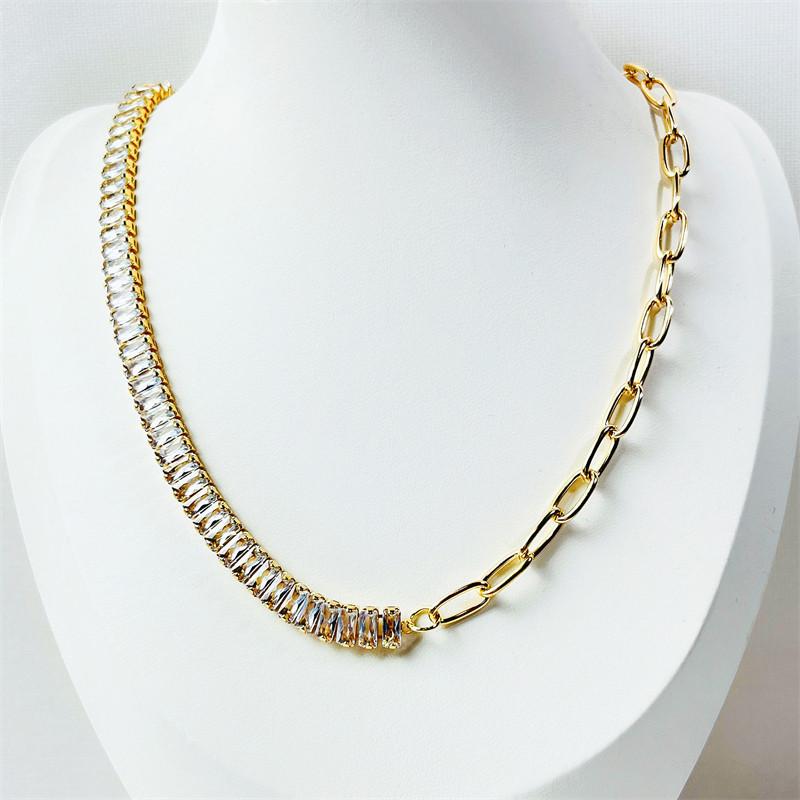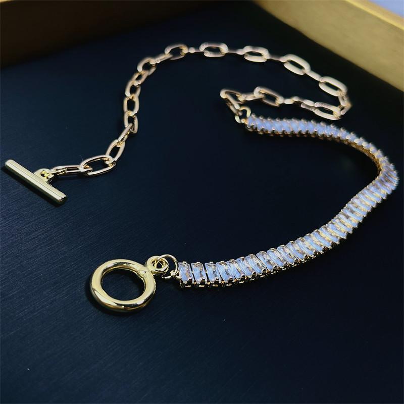 Material/Material: aleación de zinc + circón Color/color:oro Tamaño/Longitud del tamaño: longitud de la cadena 43cm Peso/peso: aproximadamente 19 g Embalaje/paquete: bolsa opp transparente, embalaje independiente.