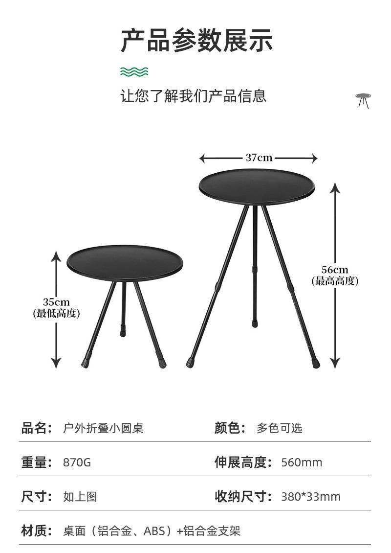 Mesa redonda pequeña, plegable y ligera para exteriores, portátil, para acampar, elevable, de aleación de aluminio, para picnic, mesa de centro pequeña móvil