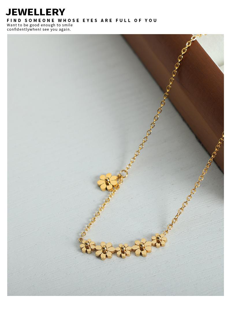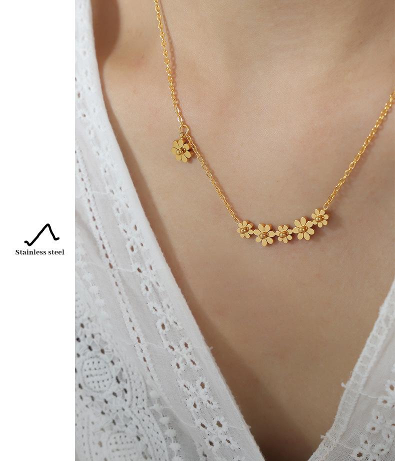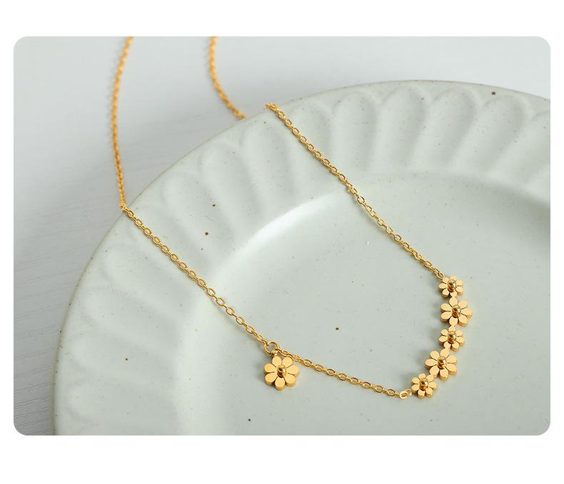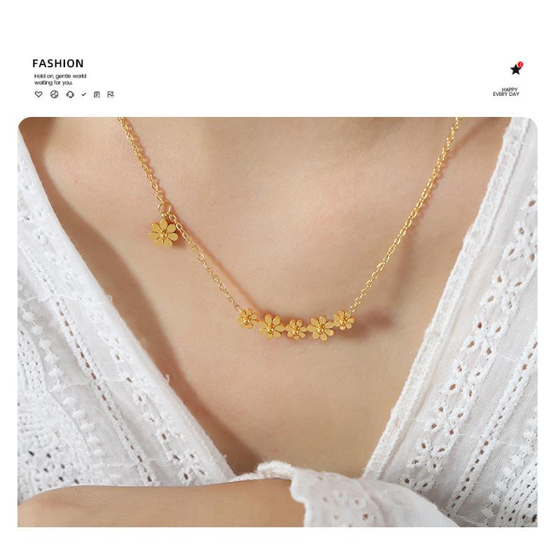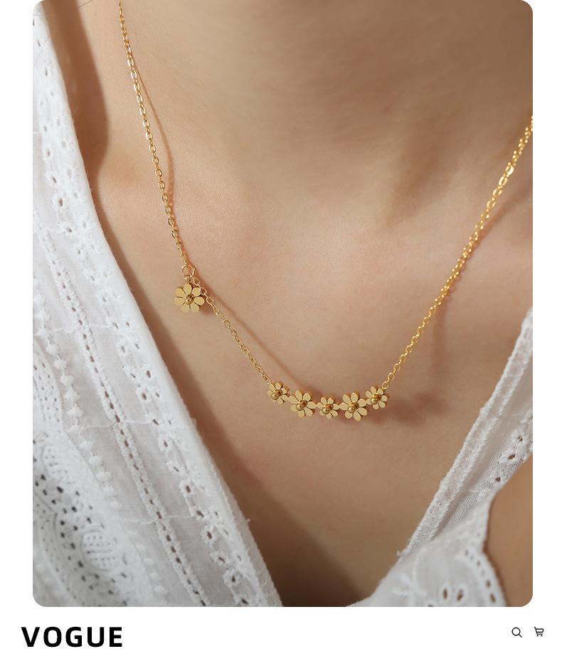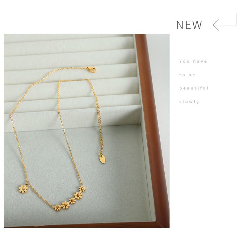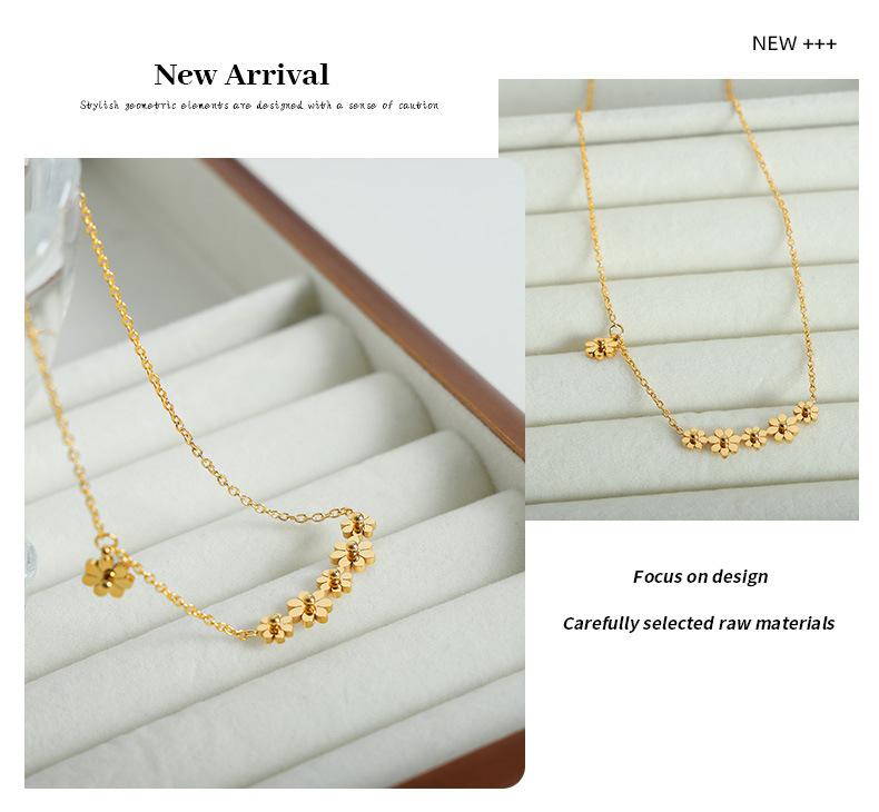 Collar con colgante de flor chapado en oro y titanio de acero para mujer, estilo transfronterizo, personalidad sencilla, diseño de nicho de alta gama, combinable con todo.