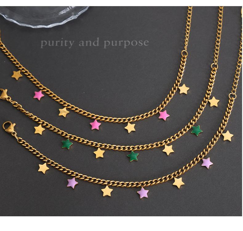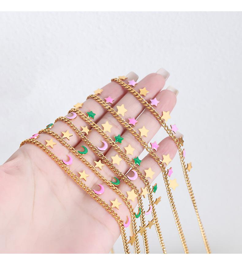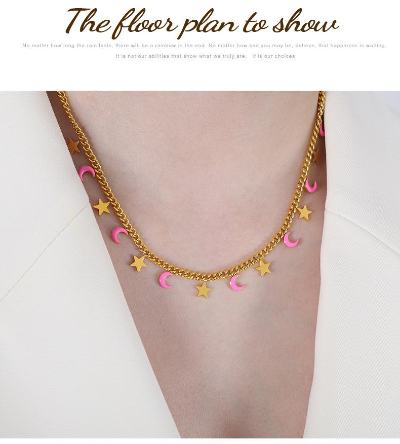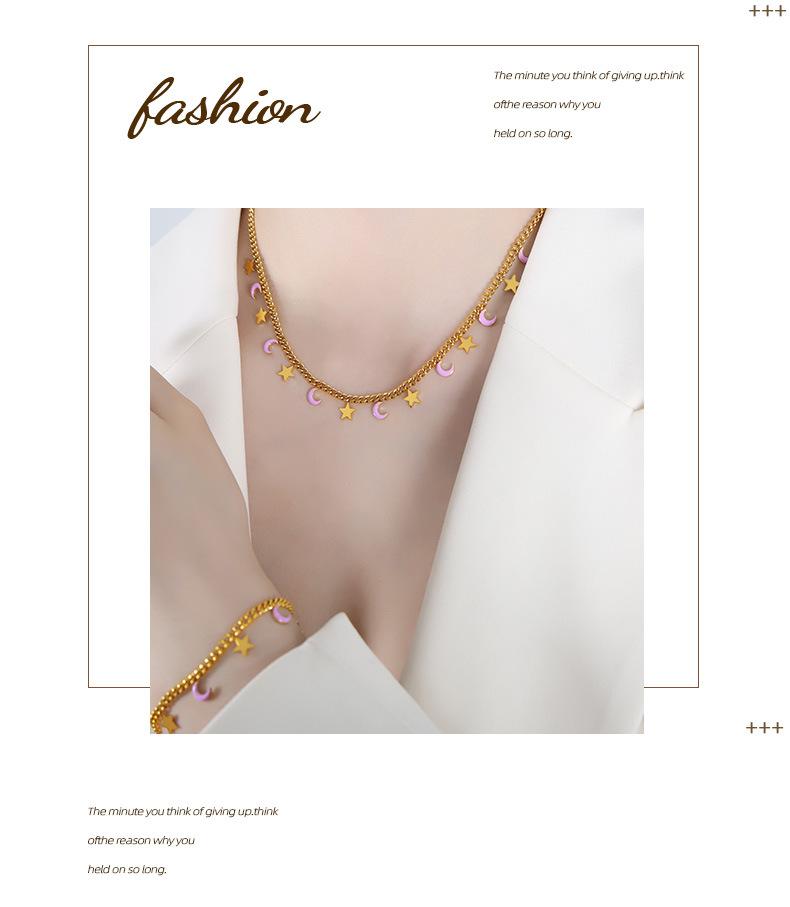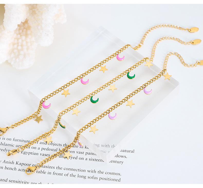 Pulsera collar de clavícula de estrella luna dulce natural de niña fresca pequeña traje de joyería de niña de acero de titanio