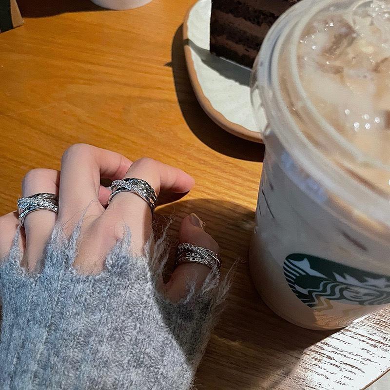 Anillo Abierto de Zircón Multicapa para Mujer Diseño Nicho de Lujo Ligero Anillo de Dedo de Alto Nivel Anillo de Pareja Personalizado de Moda Trendy