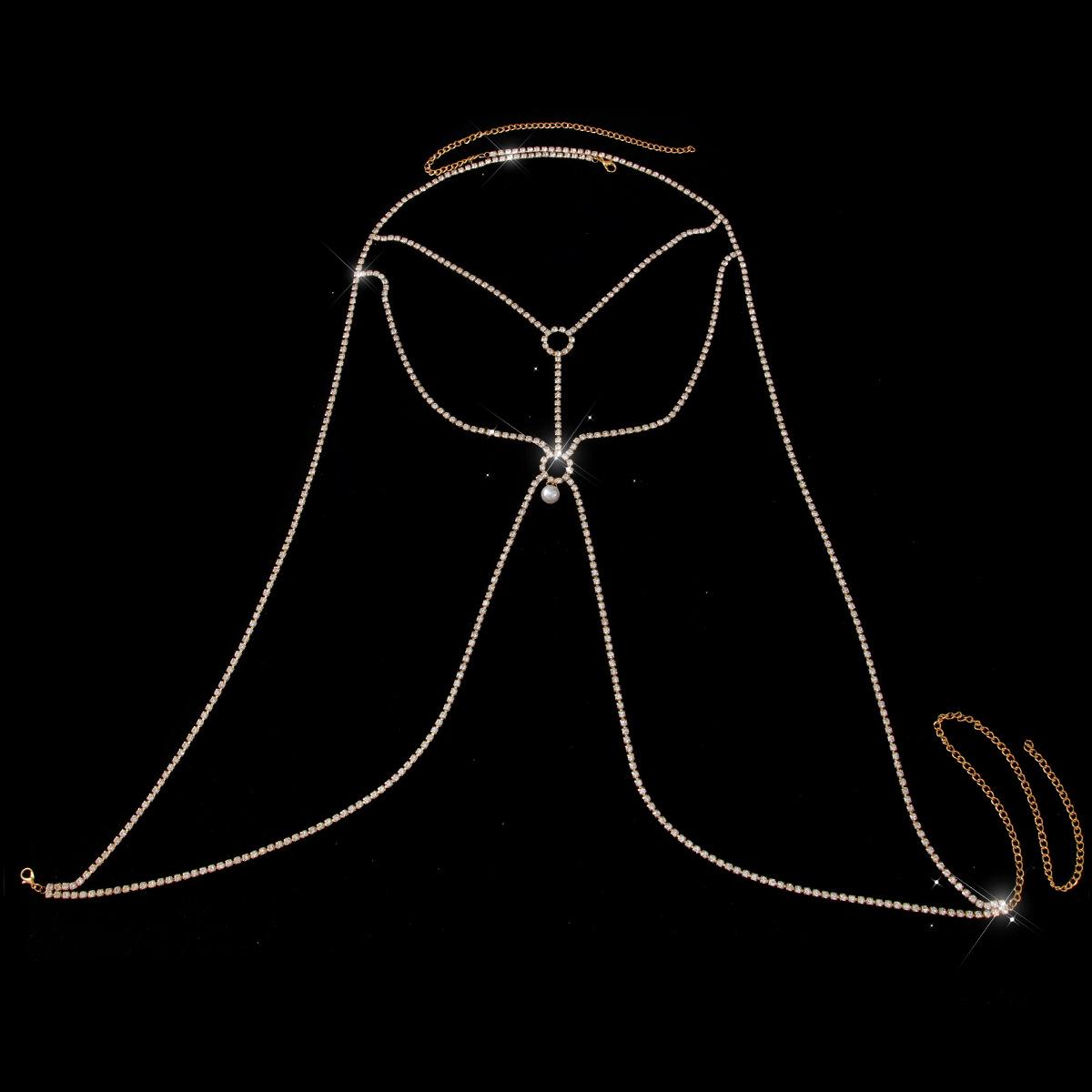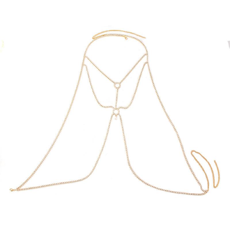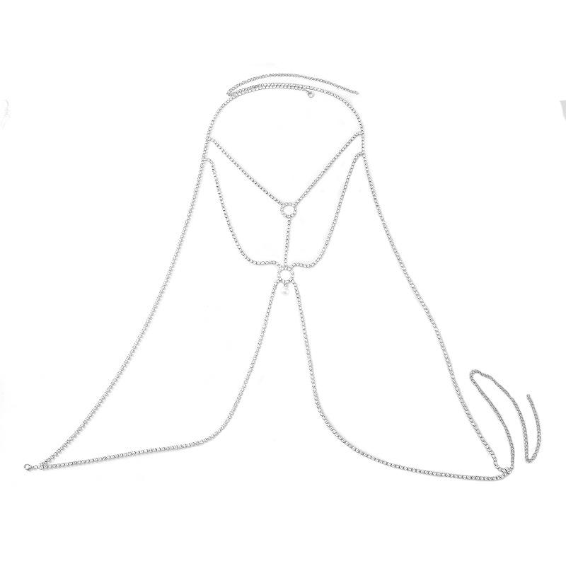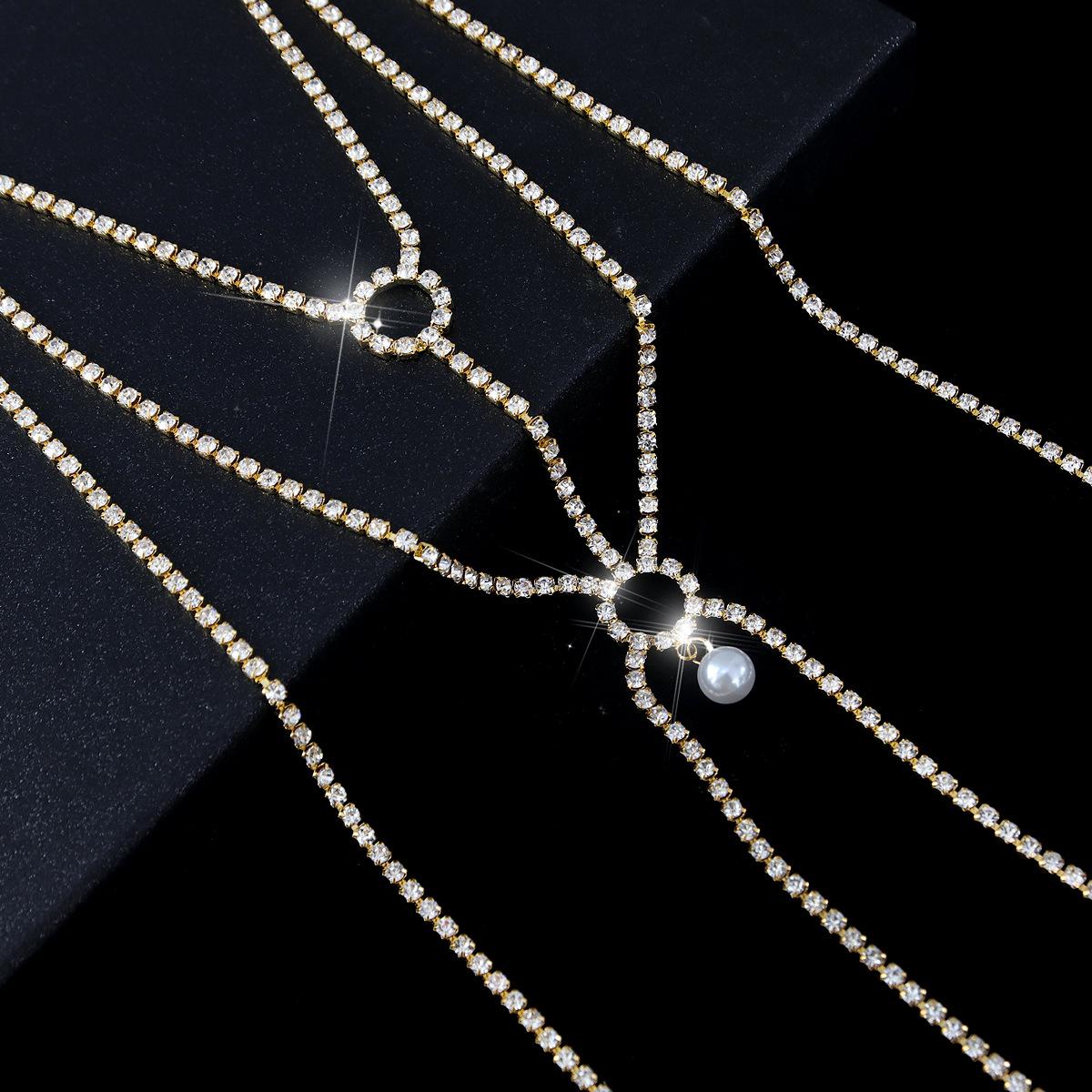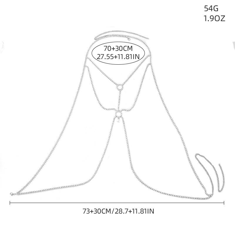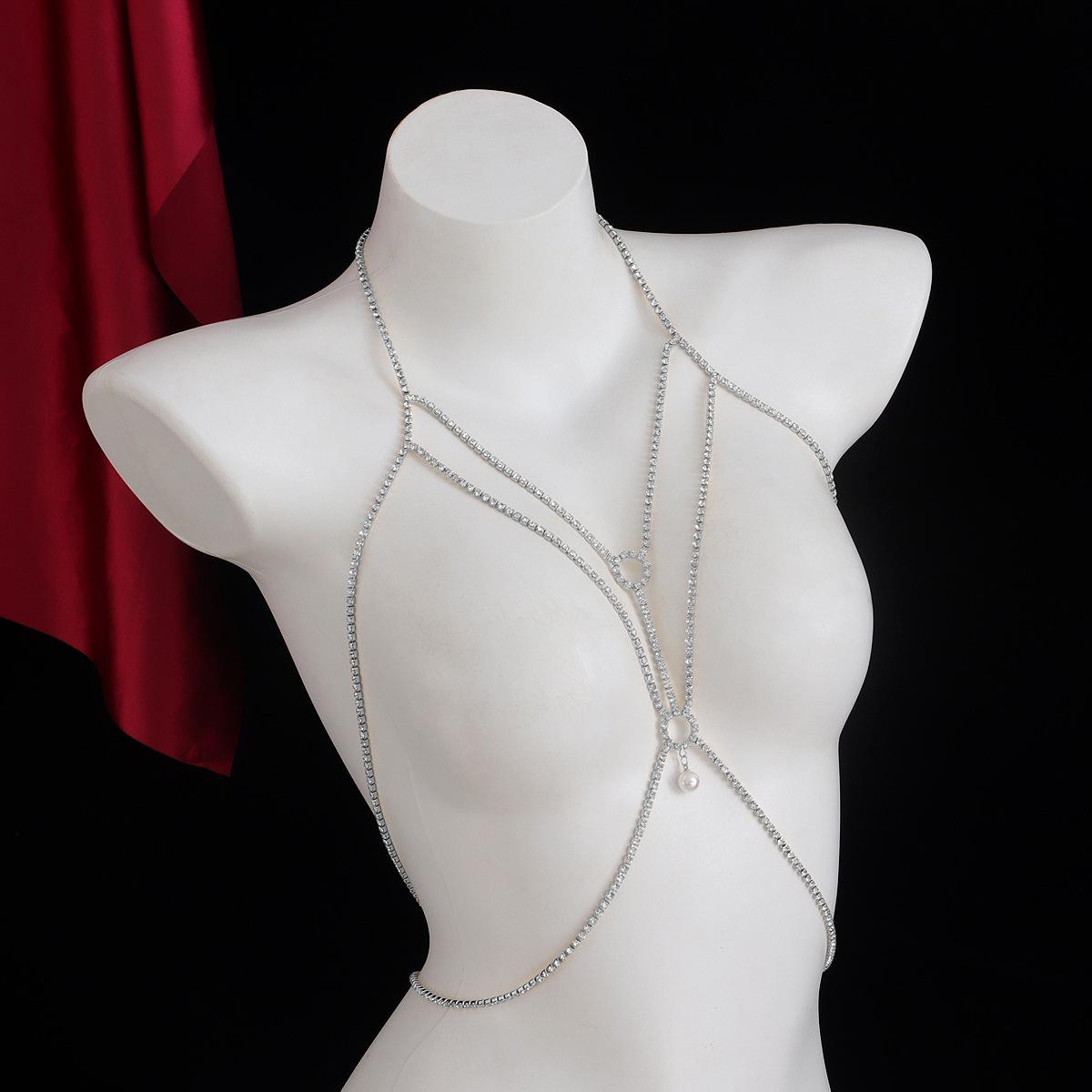 Moda Transfronteriza Europea y Americana Cadena de Pecho de Pedrería para Mujer Cadena Corporal Sexy de Diamantes Completos para Bikini Club Nocturno