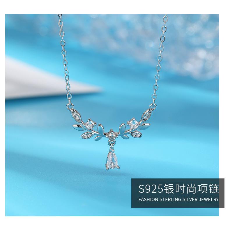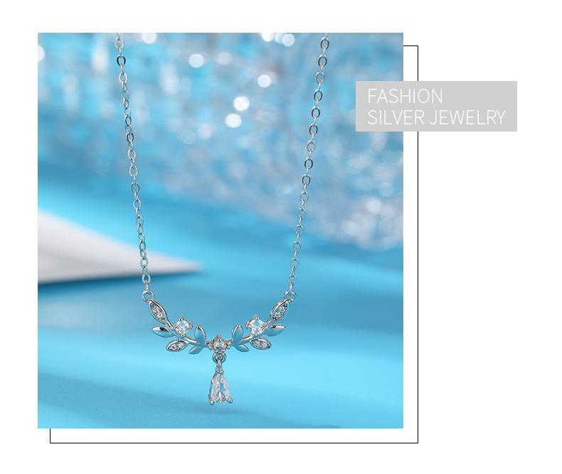 Collar de plata 925 con diseño de diosa laurel, letras de gotas de agua dulce de verano, cadena de clavícula para mujer, colgante estilo nicho.