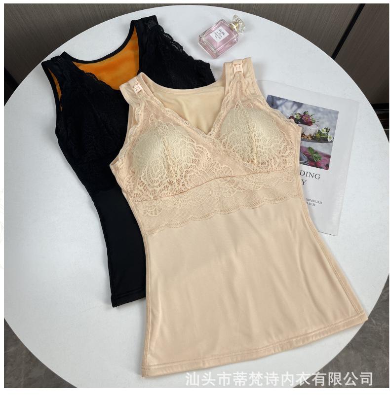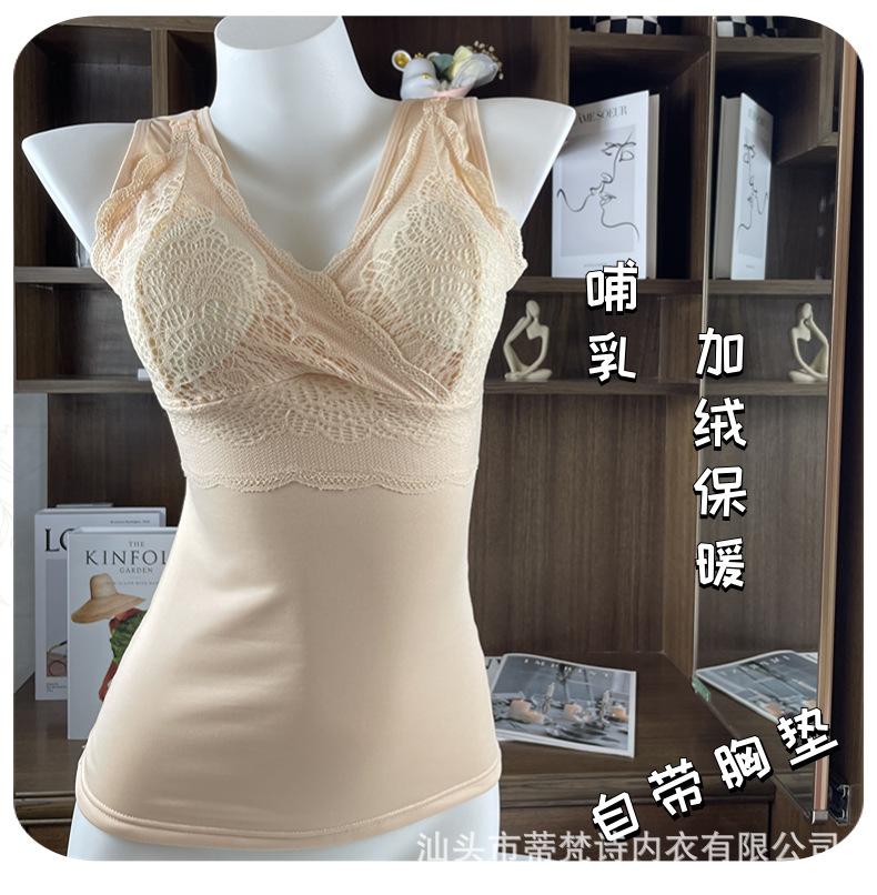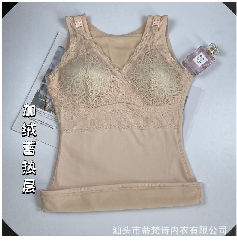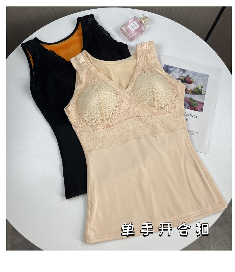 Chaleco de lactancia cálido para mujeres embarazadas de otoño e invierno, ropa interior con sujetador de lactancia con forro polar grueso y tirantes, pijamas para mujer