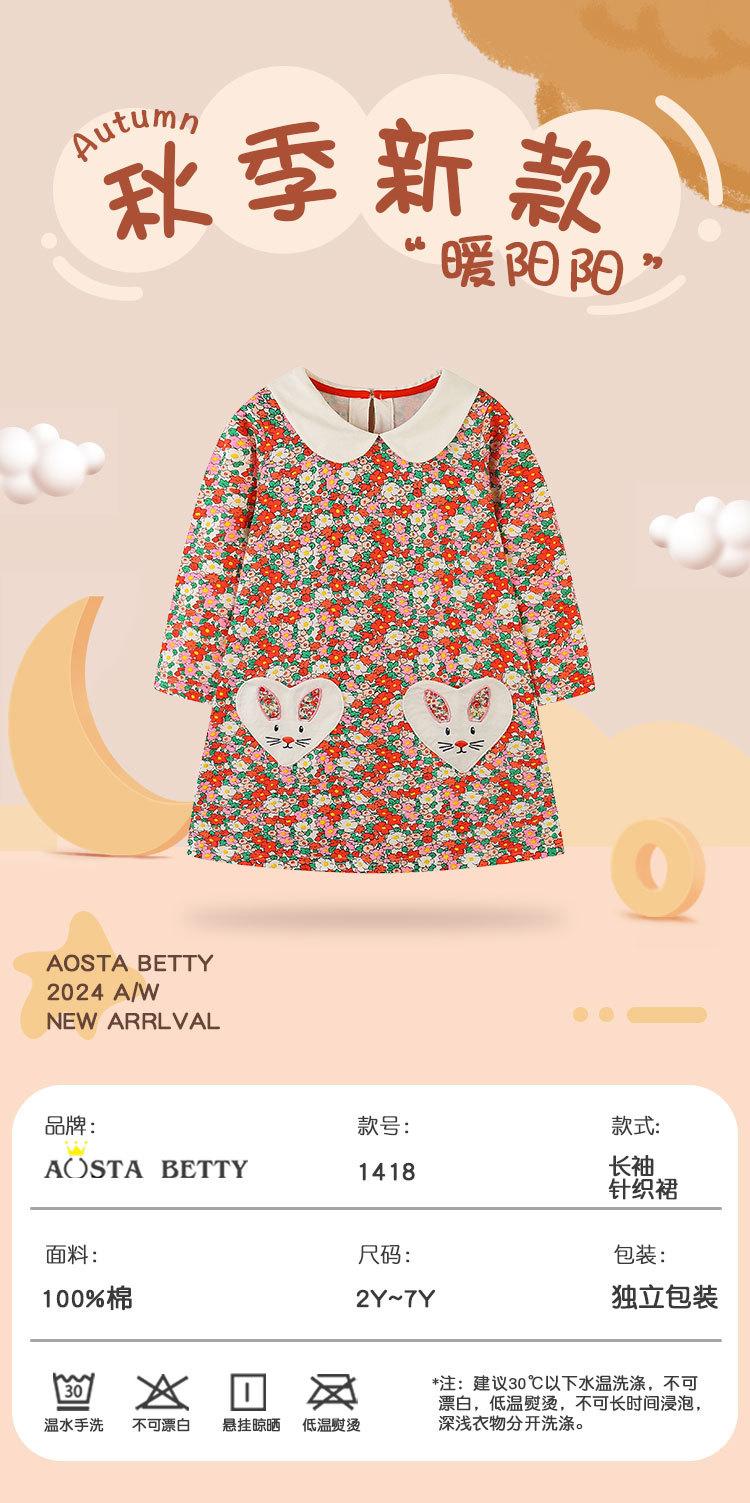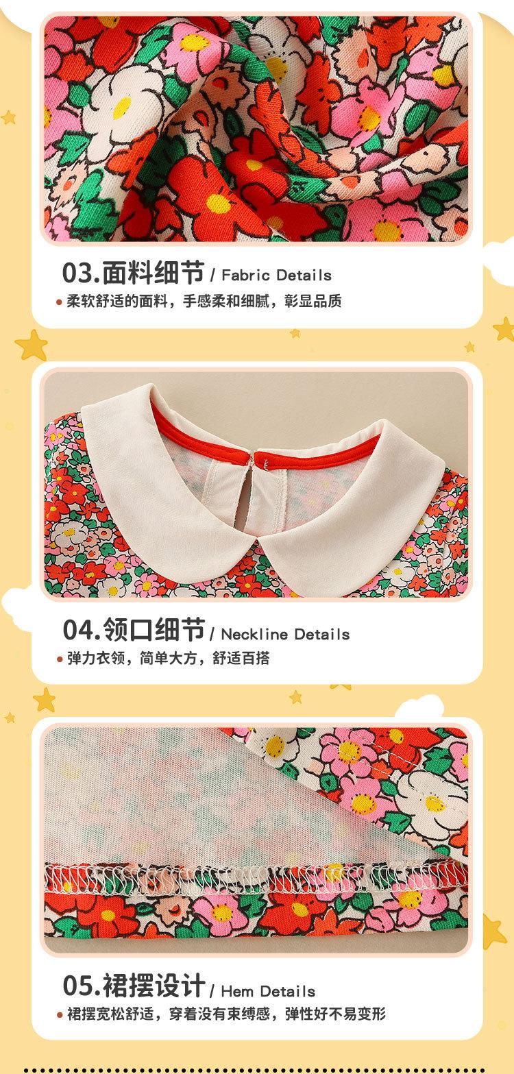 Vestido de Otoño Nuevo para Niñas Estilo Europeo y Americano Vestido de Princesa para Niños Solapa Floral de Manga Larga Vestido para Niños