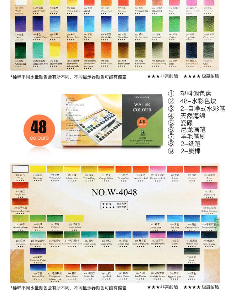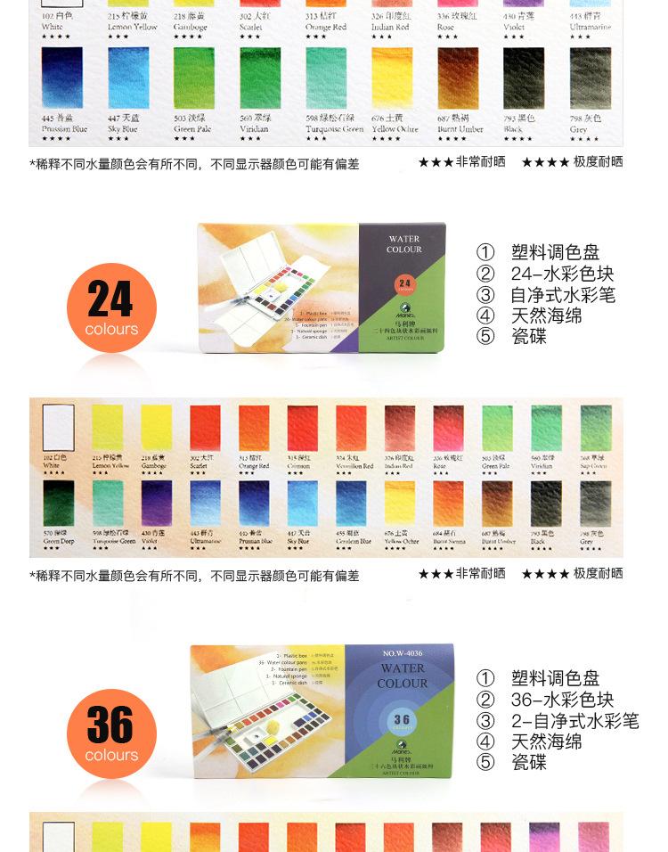 Pintura de acuarela sólida Marley, 48 colores, 24 colores, 36 colores, tubo de aluminio, pintura de acuarela transparente, juego de acuarela para estudiantes