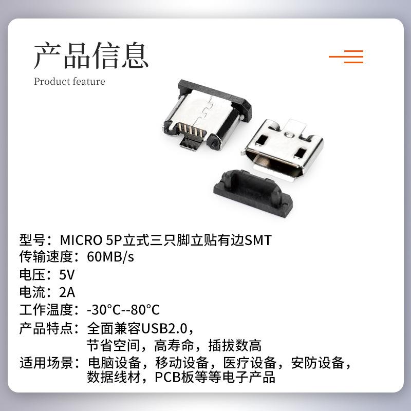 Conector Micro Hembra Micro5P/5Pin para Placa 5.1 Borde Enrollado/Boca Plana Conector Smt Patch USB