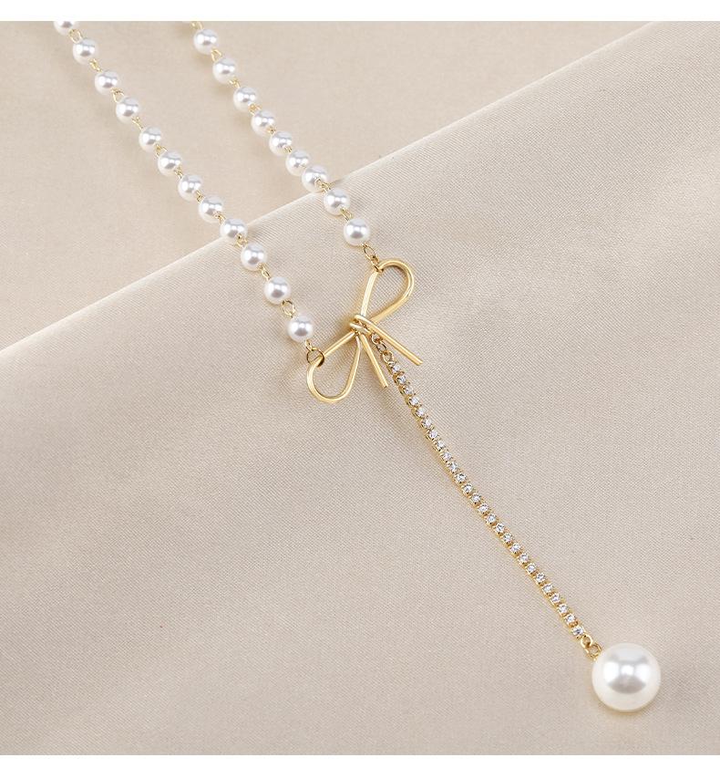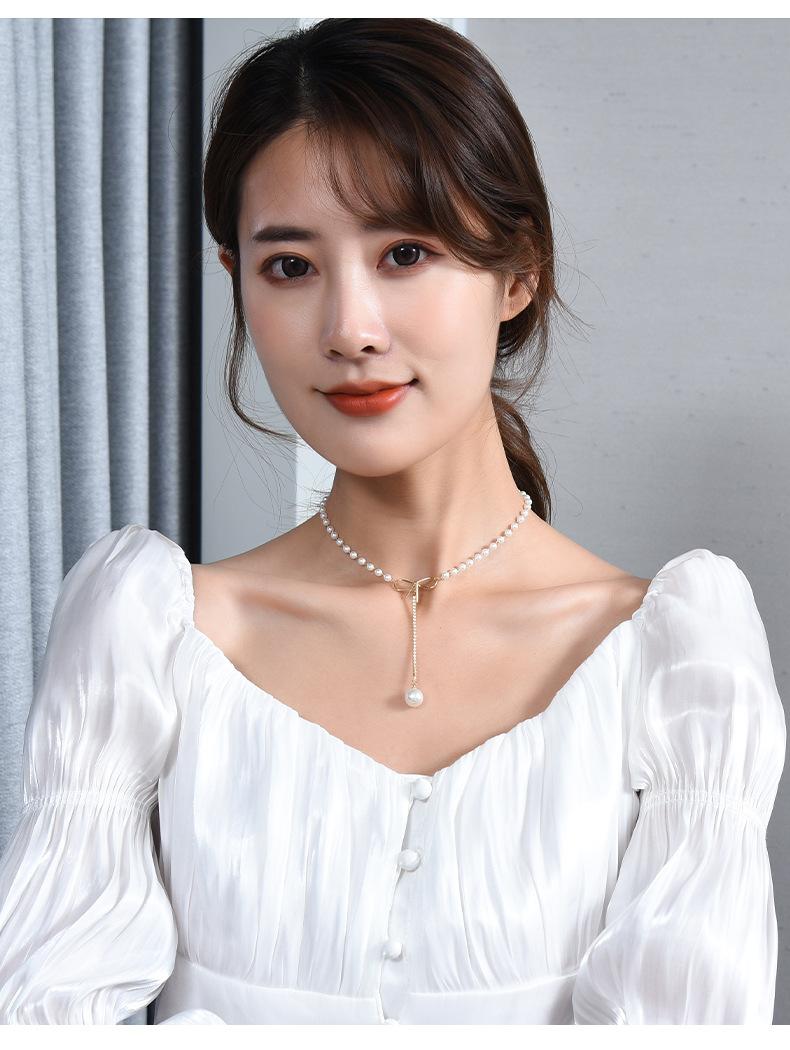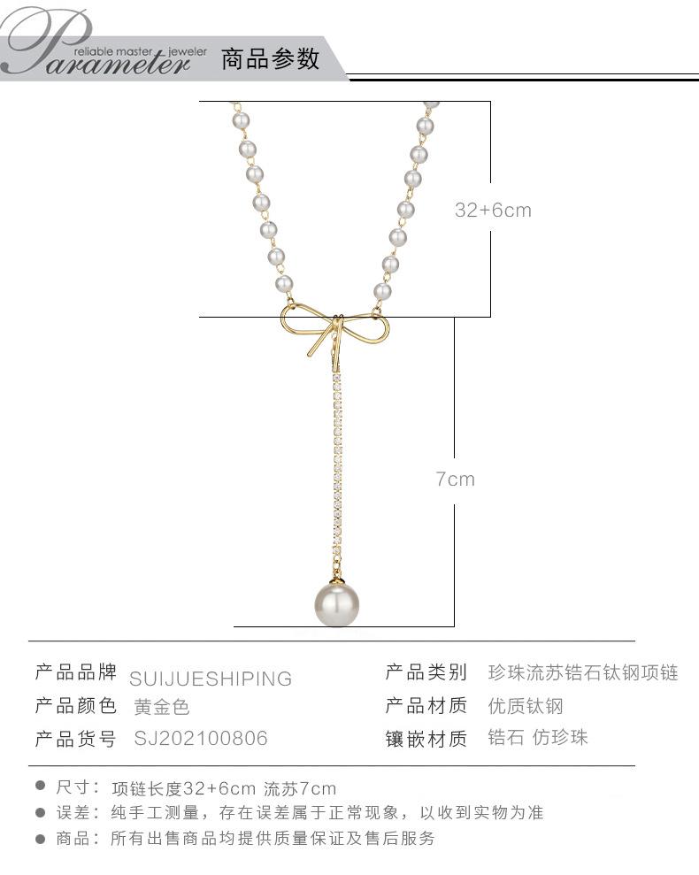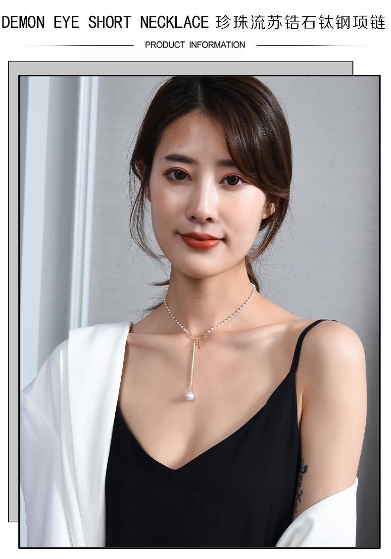 Venta directa de fábrica, collar de acero de titanio, collar de perlas de cola de pez para mujer, cadena de clavícula versátil de moda, accesorios de cadena de perlas con temperamento