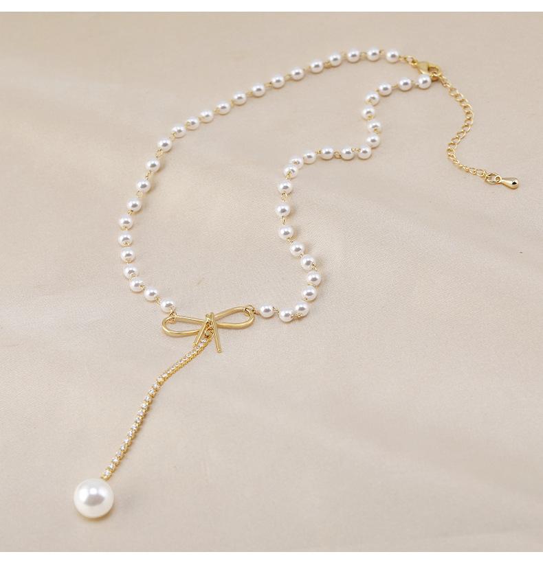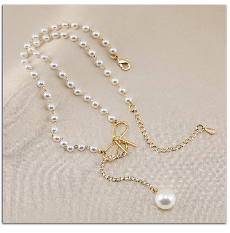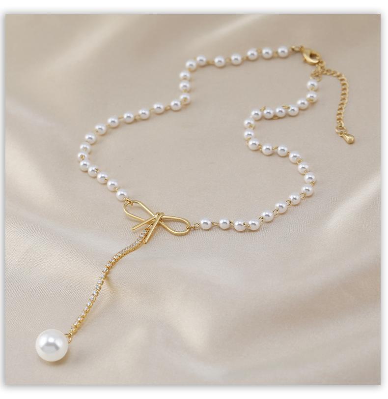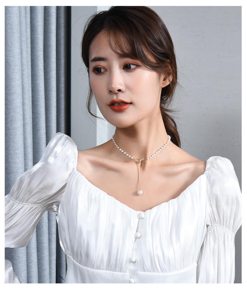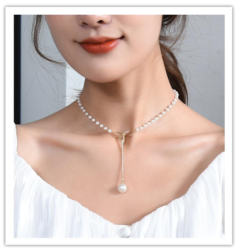 Venta directa de fábrica, collar de acero de titanio, collar de perlas de cola de pez para mujer, cadena de clavícula versátil de moda, accesorios de cadena de perlas con temperamento