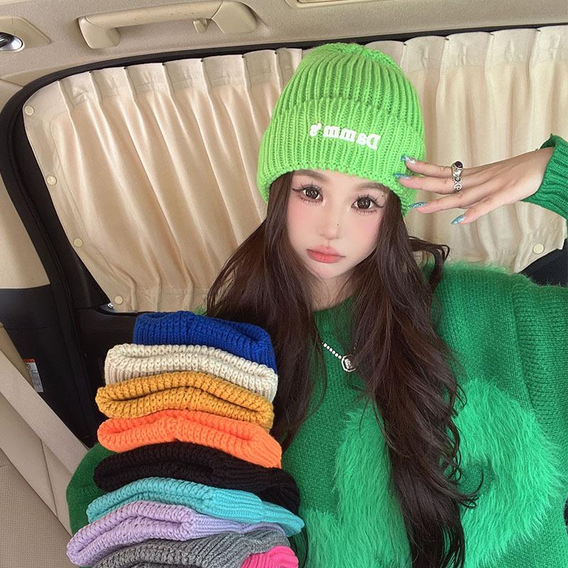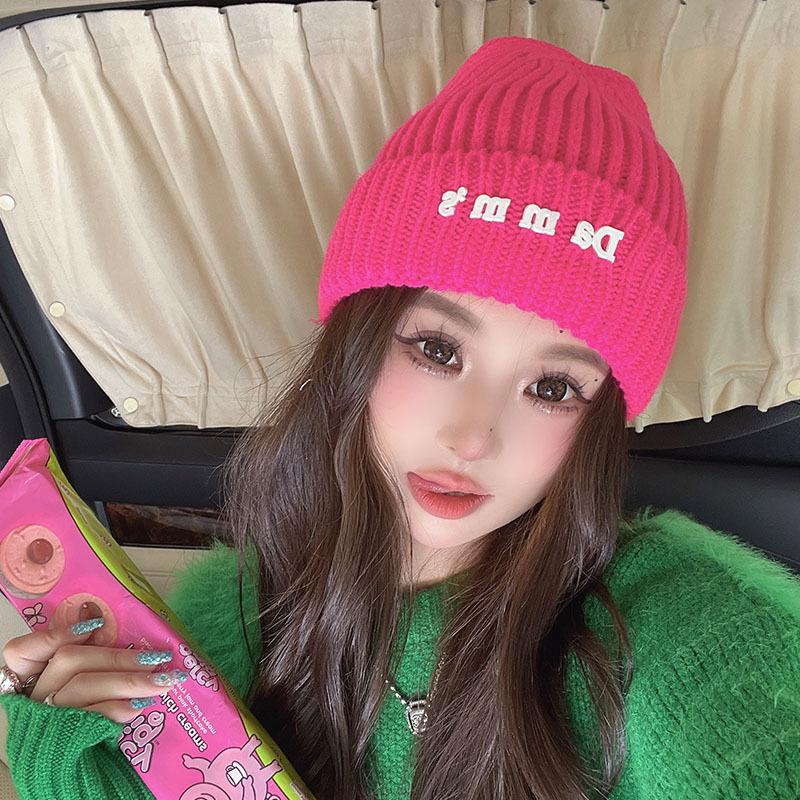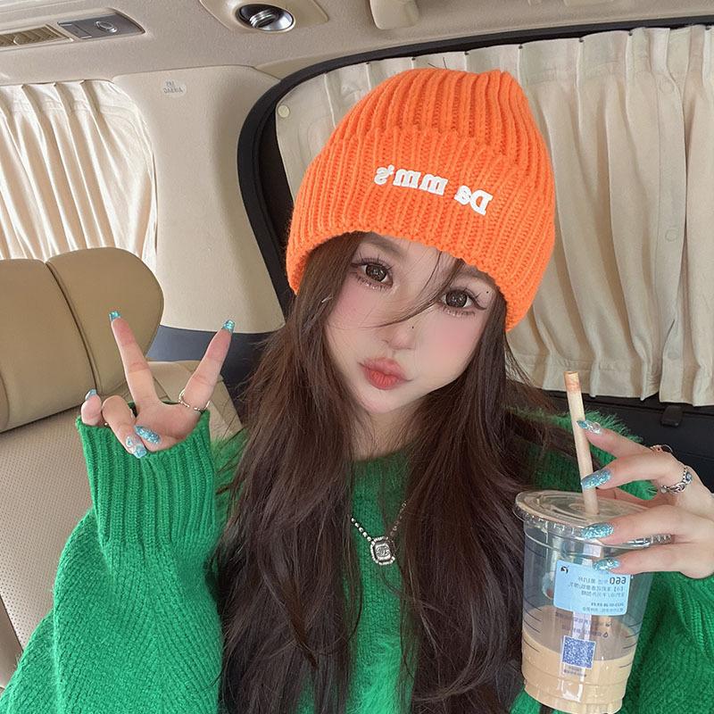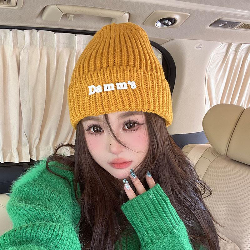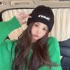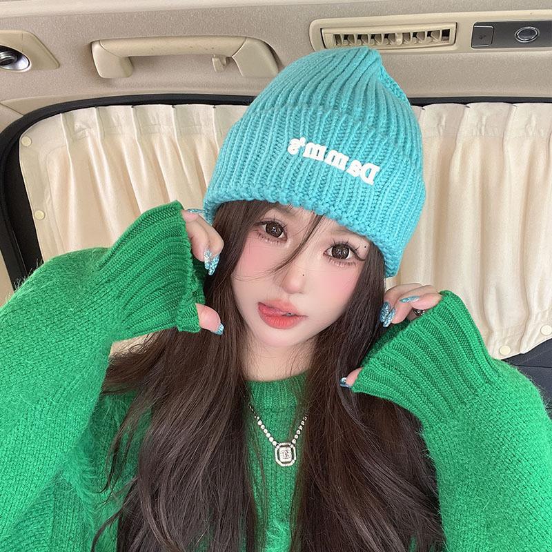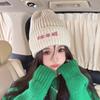 Ins otoño e invierno Nuevo gorro de lana con letras offset para mujer, cálido, con protección para las orejas, gorro de punto, estilo coreano, gorro de punto, gorro para el frío, moda