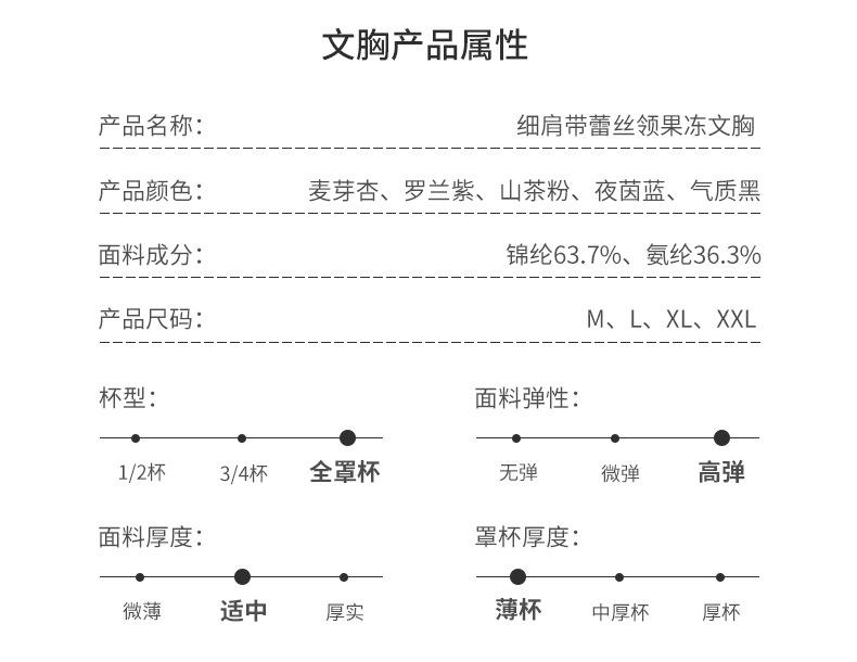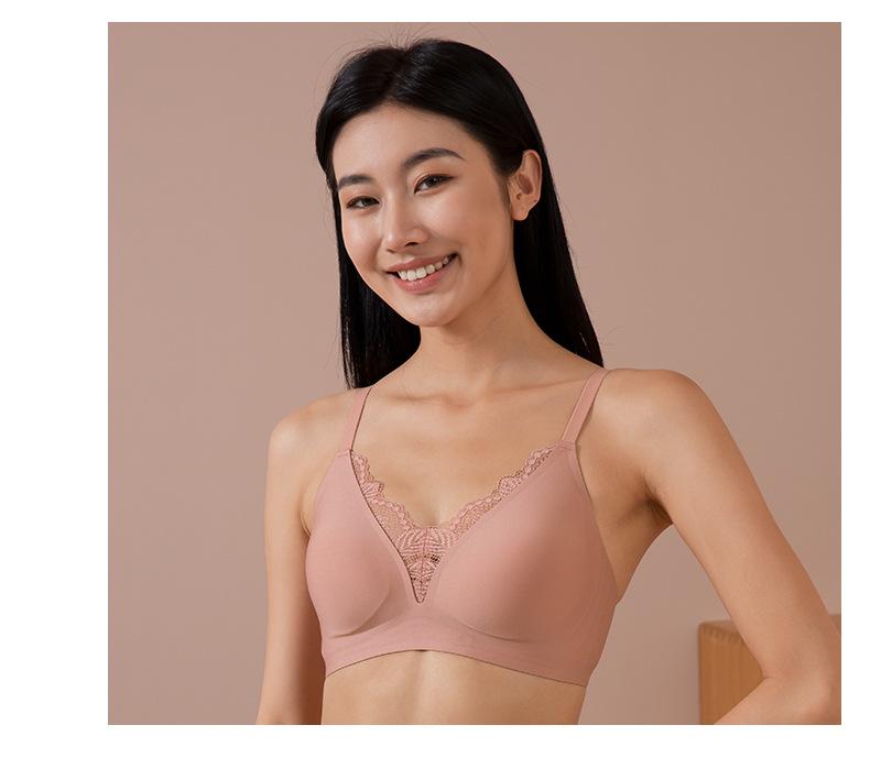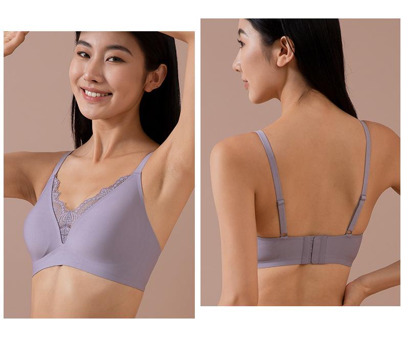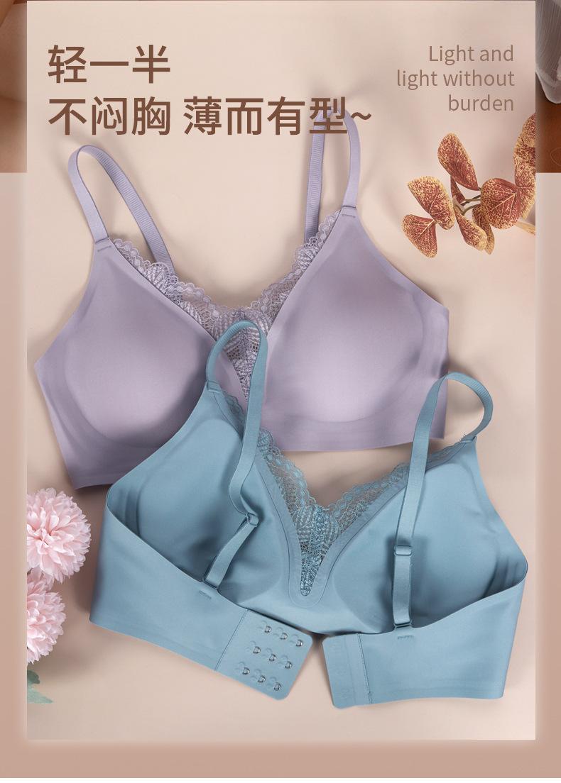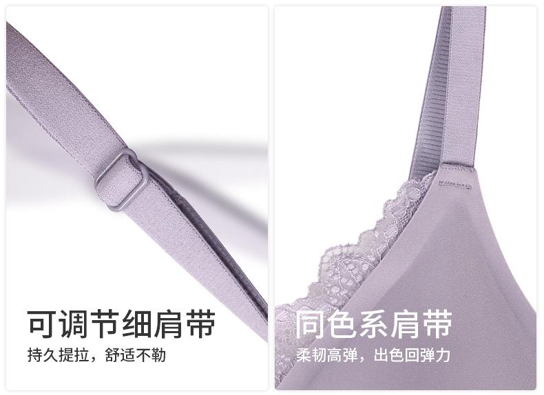 Francés 7A Antibacterial Tirantes Espagueti Jelly Sin Costuras Encaje Íntimos Push up Pechos Pequeños Sujetador Copa Semifija Soporte Suave para Mujer