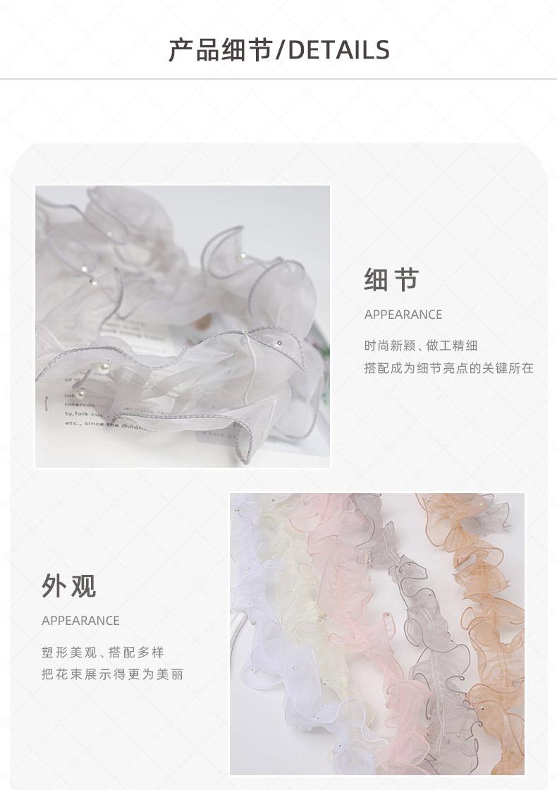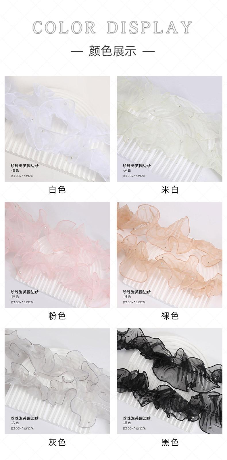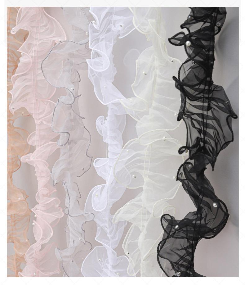 Fabricante mayorista de hilo para envolver bordes con borde abullonado de organza de color encaje ondulado estilo Chanel con flor de perla