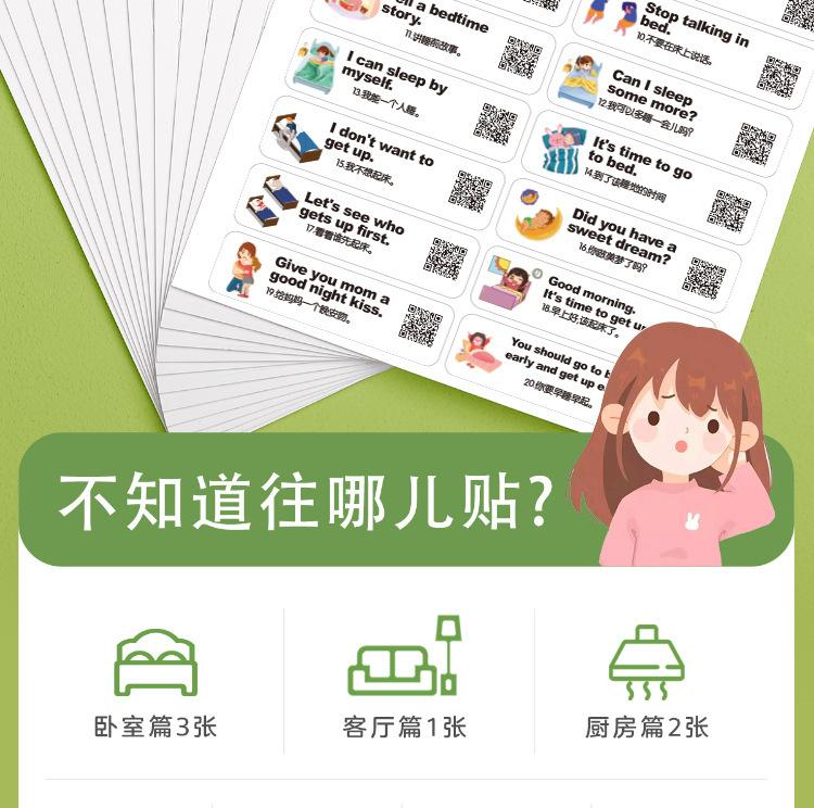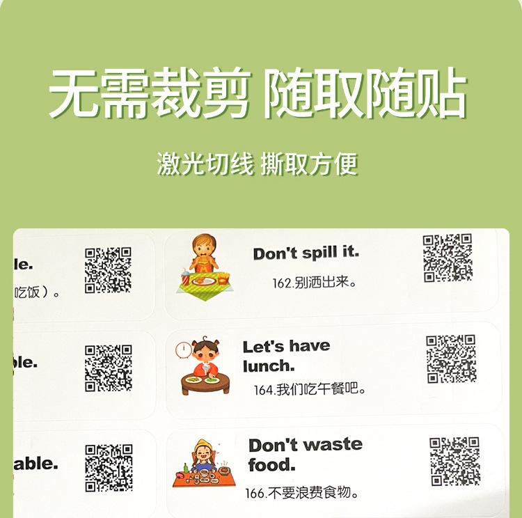 Pegatinas de conveniencia para inglés oral en escuelas primarias y secundarias. Pegatinas de palabras de iluminación para educación temprana para niños. Pegatinas de escenas de la vida. Pegatinas de inglés oral.