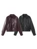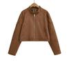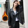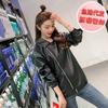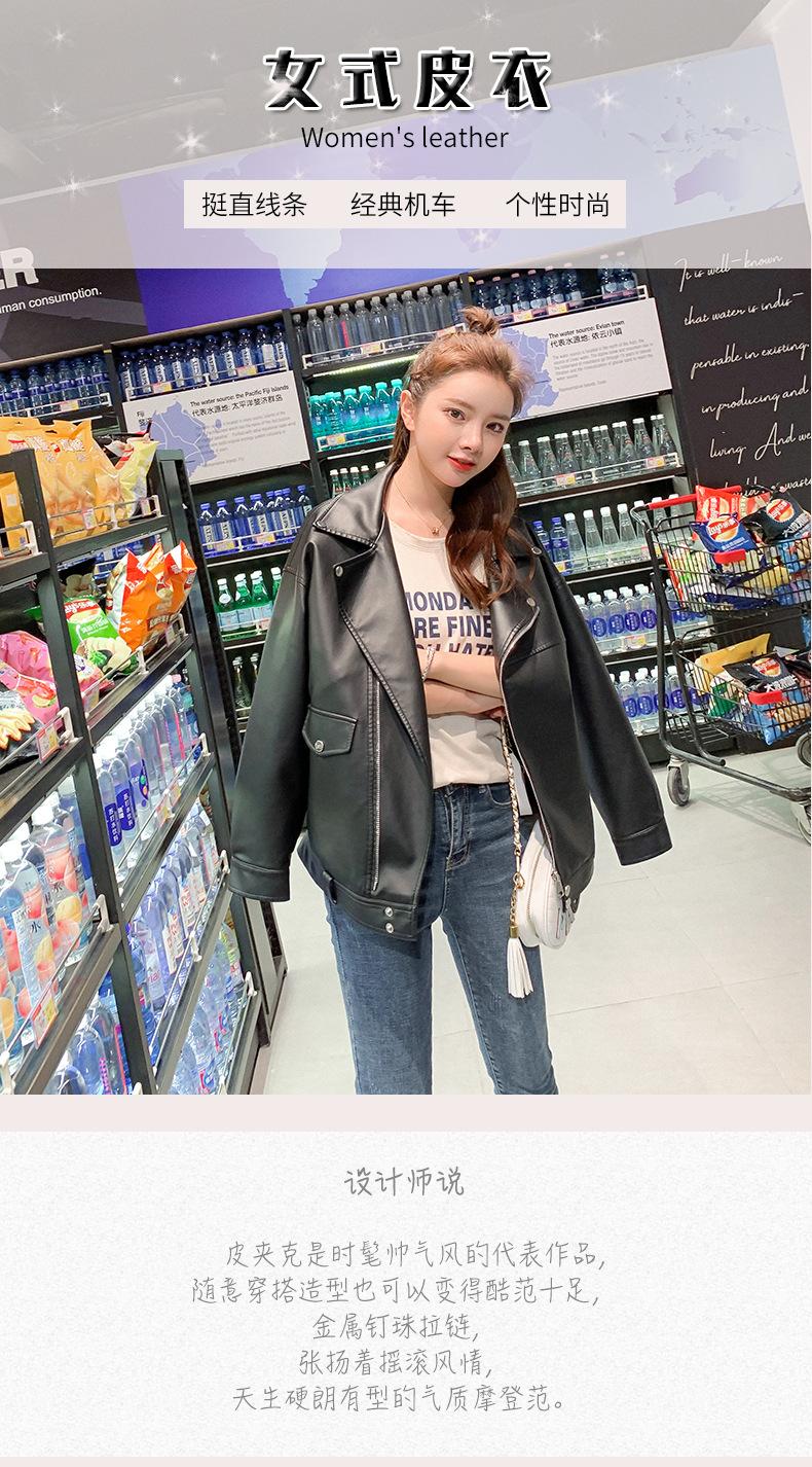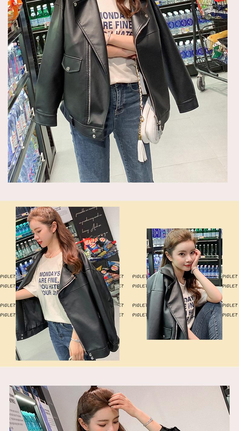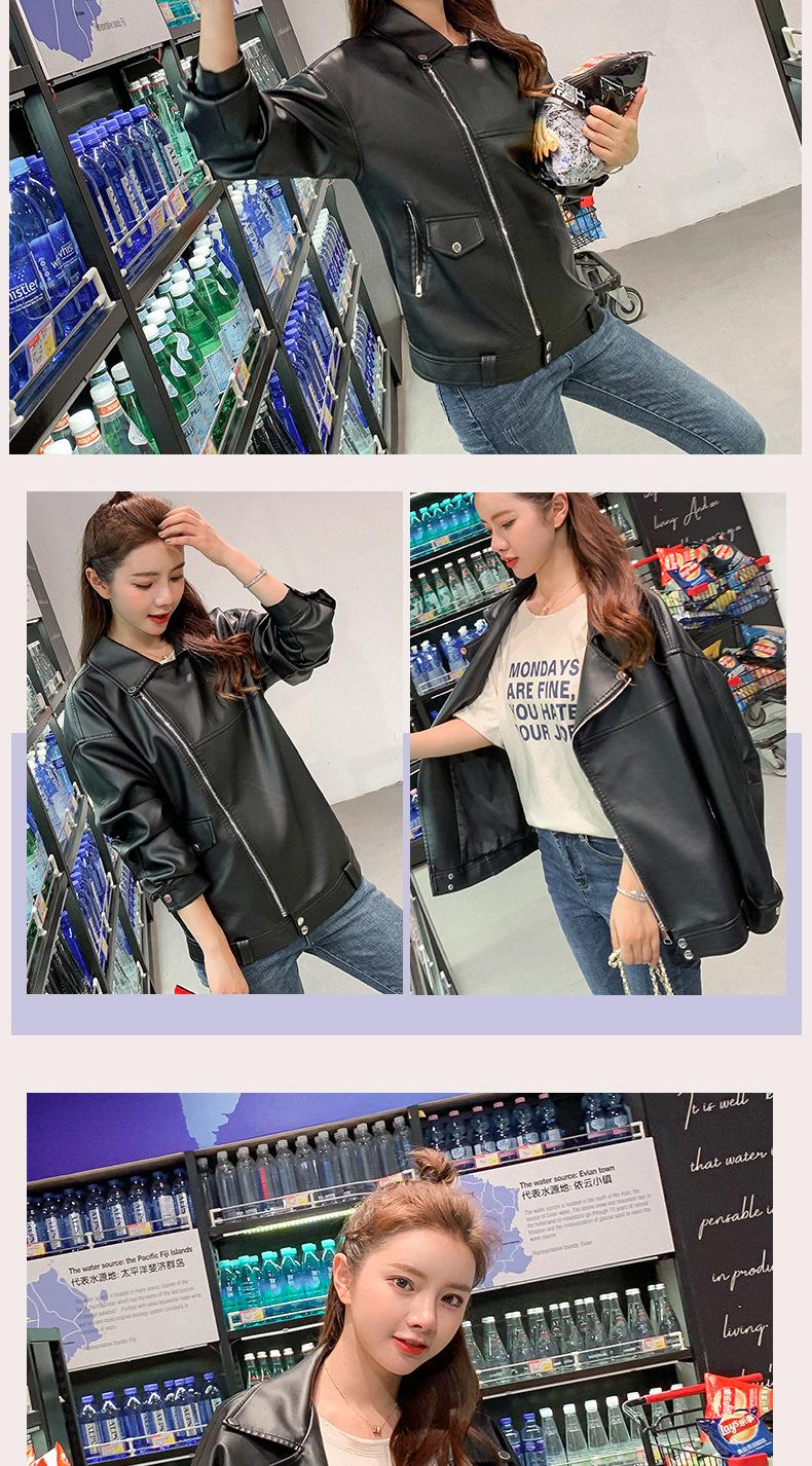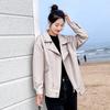 Abrigo de cuero sintético con solapa y manga larga para mujer, estilo coreano, color liso, informal, para ciclismo, a principios de otoño