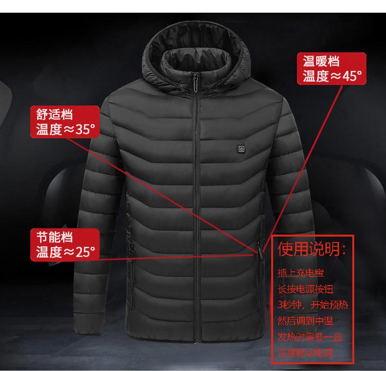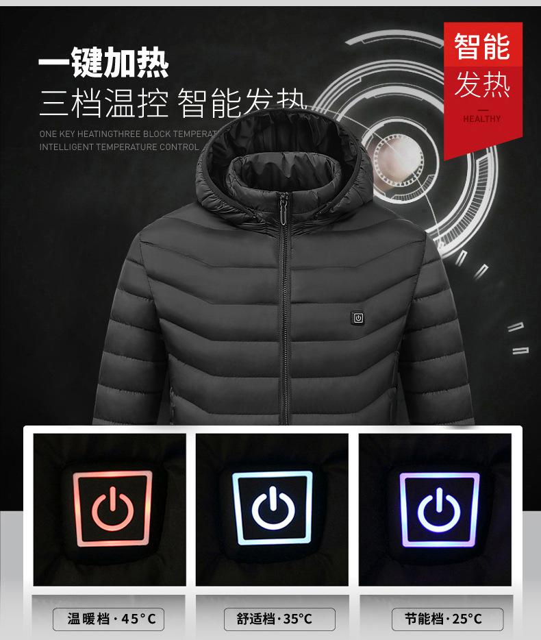 Ropa de calentamiento inteligente transfronteriza USB calentamiento de tres zonas ropa de algodón para hombres y mujeres chaquetas calentadas ropa de calentamiento eléctrico cálida y gruesa