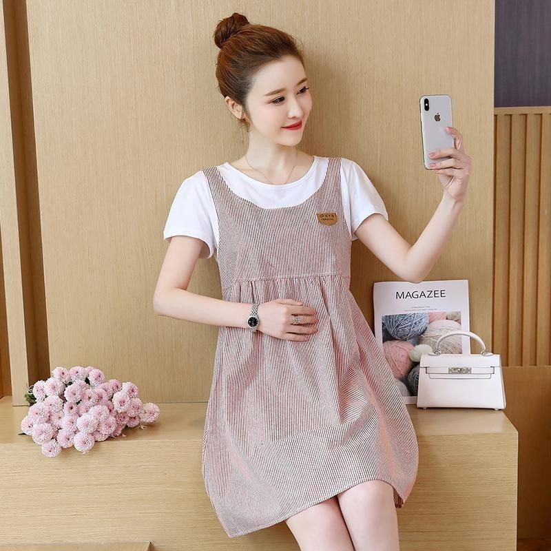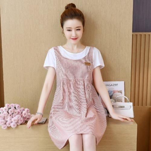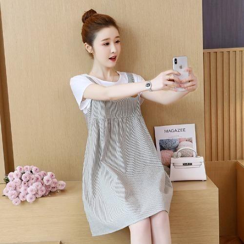 Vestido de verano de maternidad, moderno y moderno, top de maternidad, falda corta holgada de longitud media para mujer