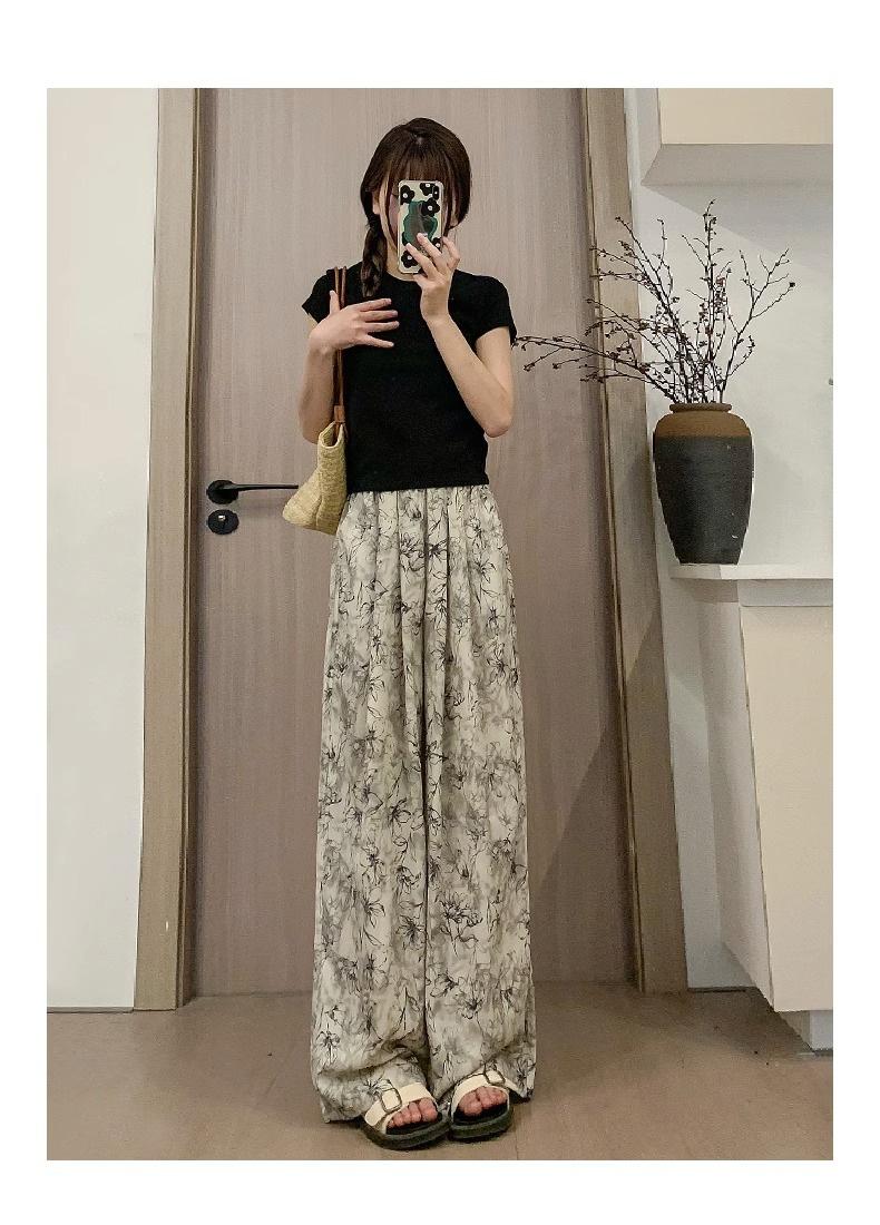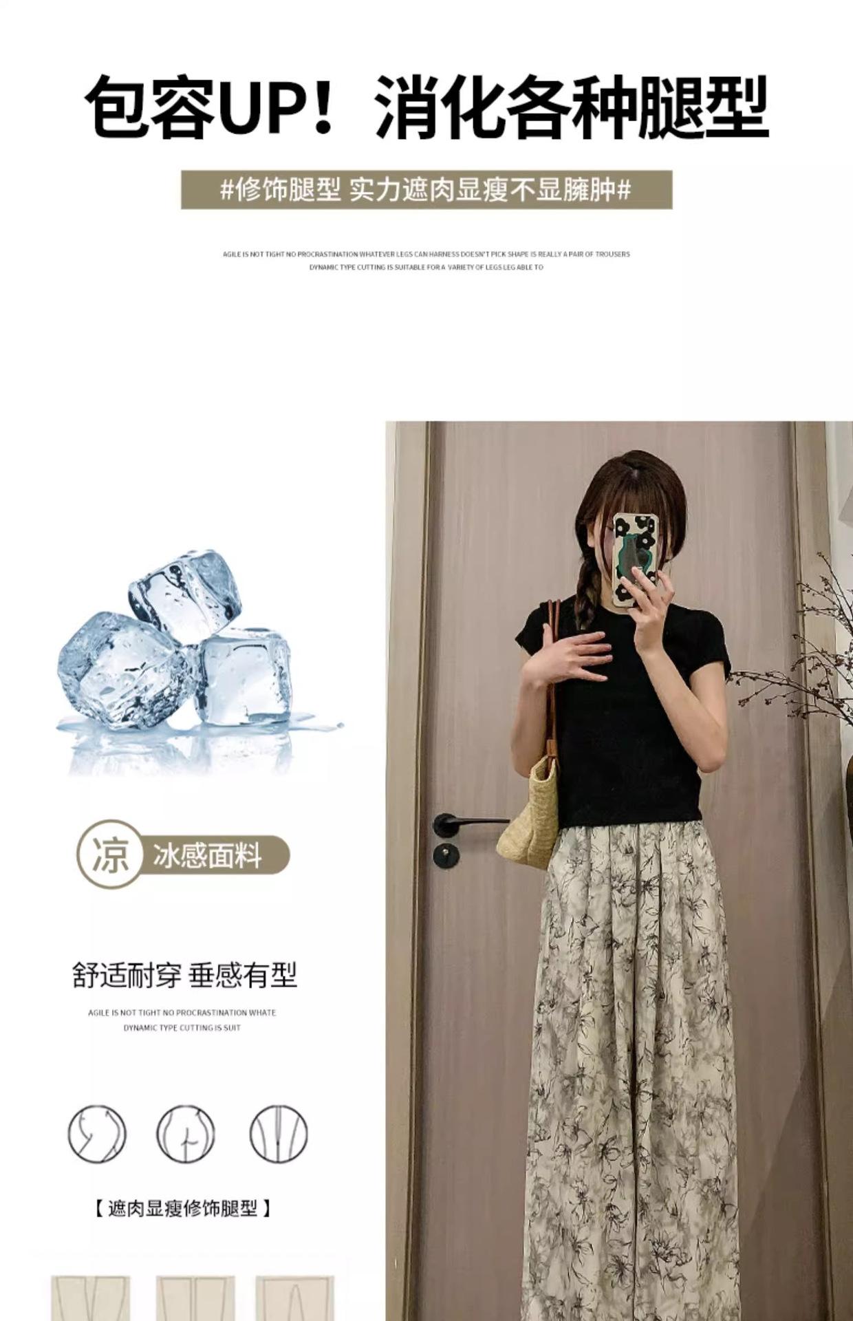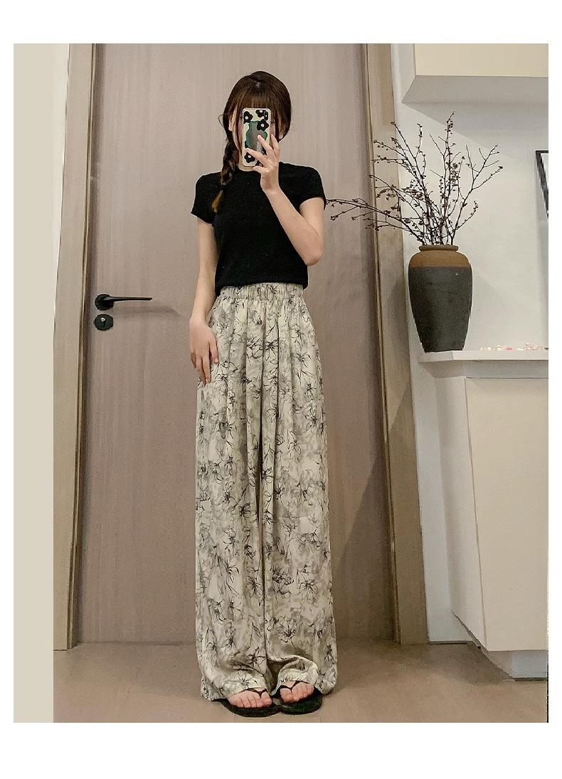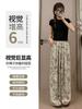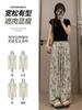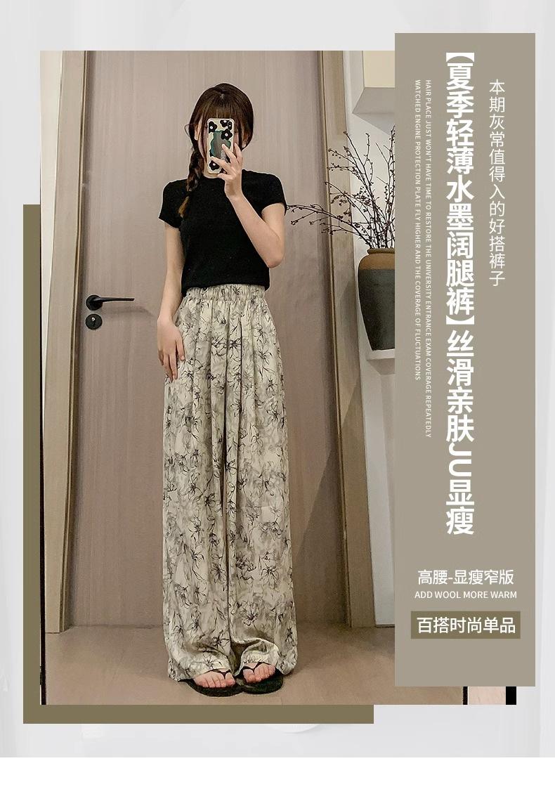 Pantalones anchos con efecto tie-dye y tinta para mujer, de verano, finos, de cintura alta, estilo chino, informales, holgados, de seda fría.