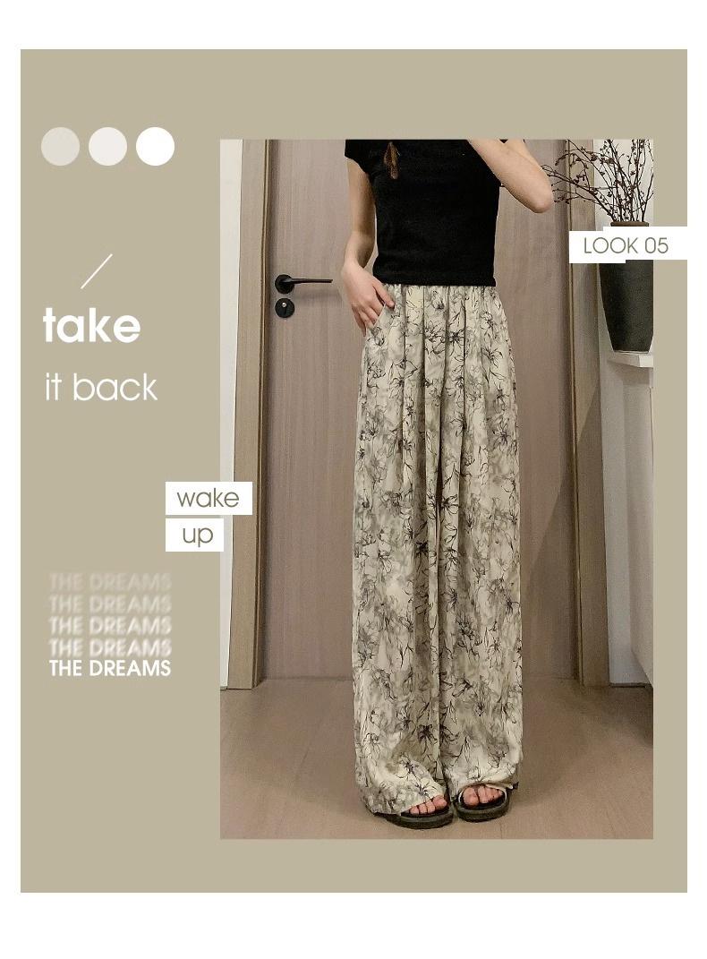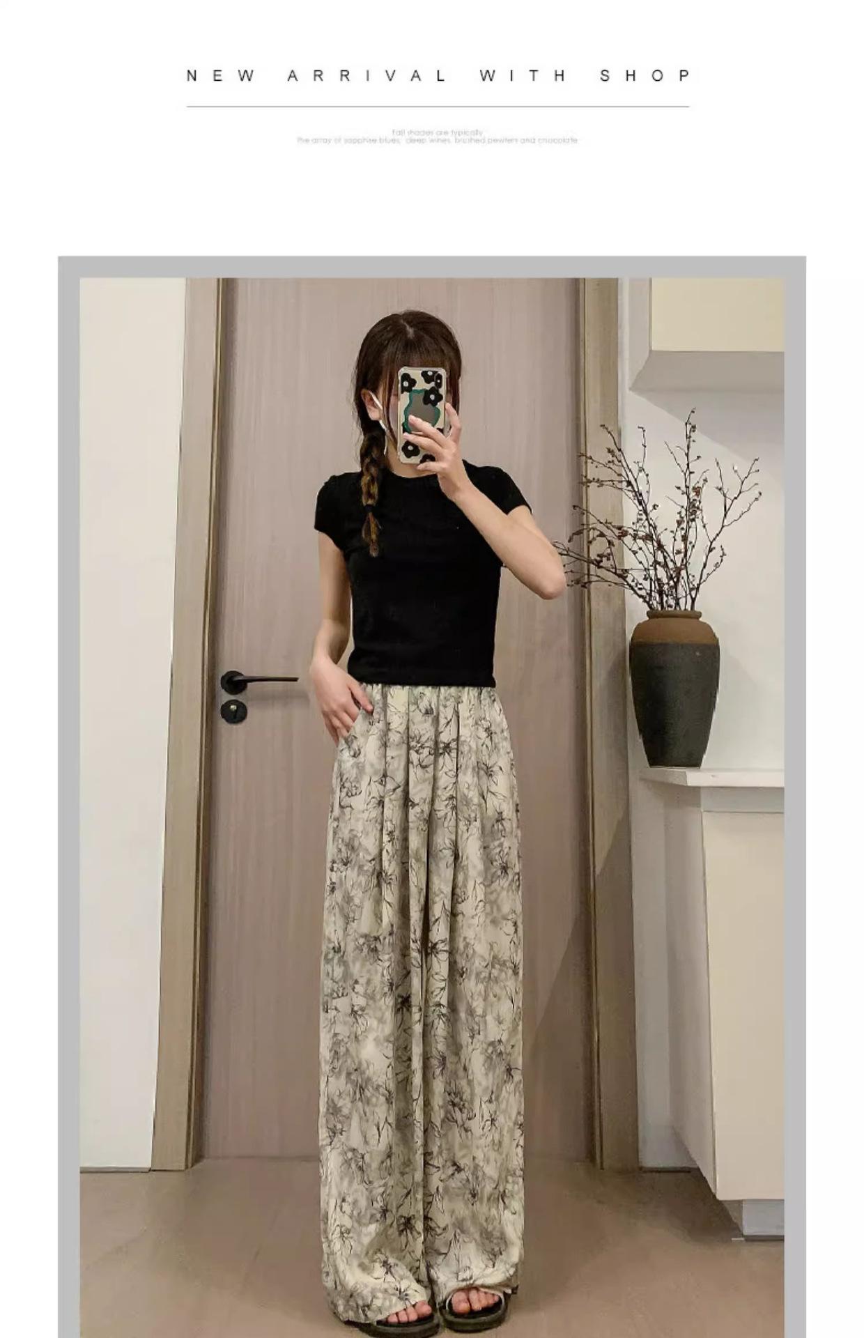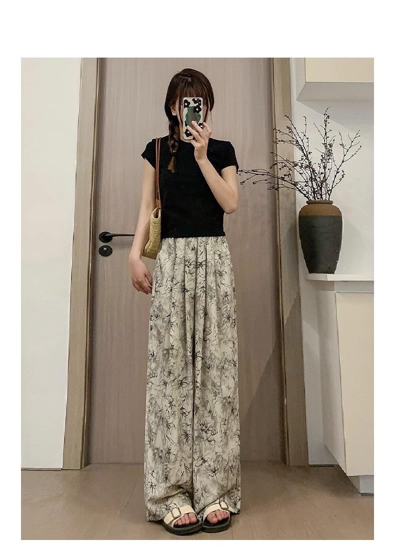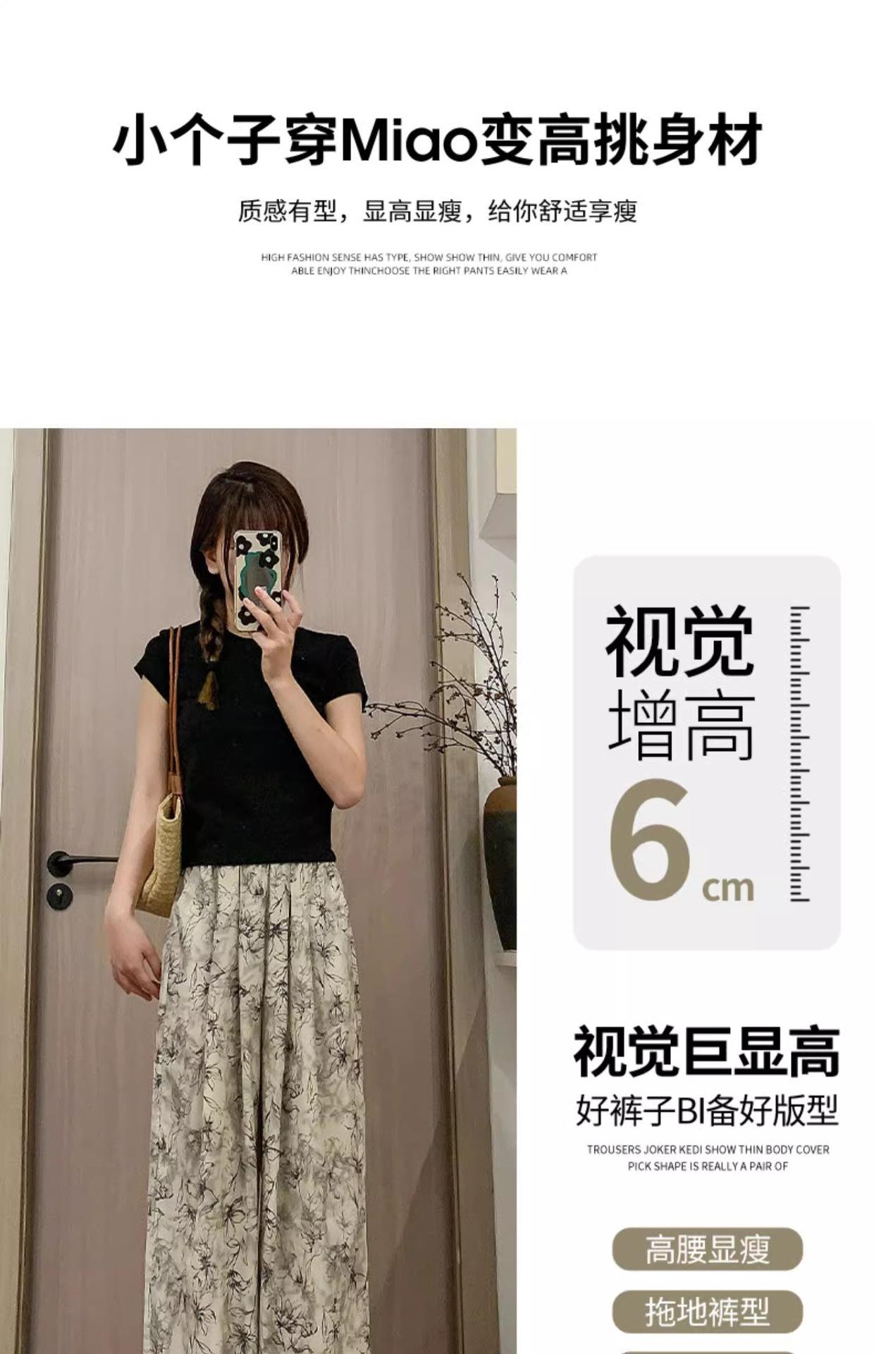 Pantalones anchos con efecto tie-dye y tinta para mujer, de verano, finos, de cintura alta, estilo chino, informales, holgados, de seda fría.